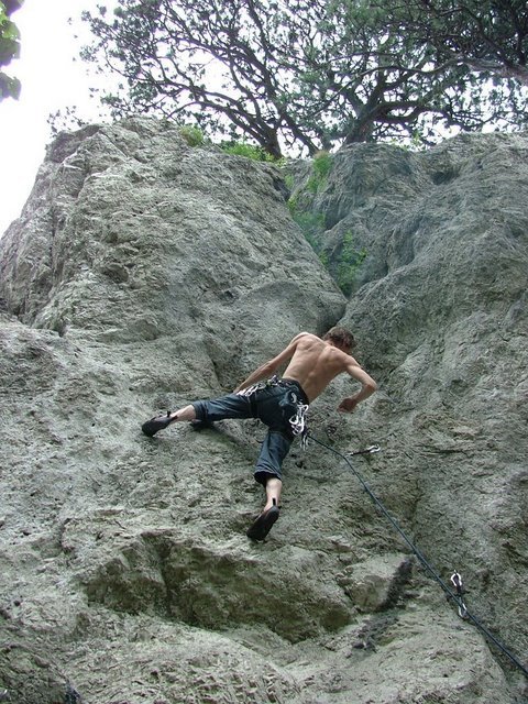 Routencharakter: Zumeist steile Platten – und Wandkletterei; Überhänge und kurze Risse. Öfters große und scharfkantige Henkelgriffe.