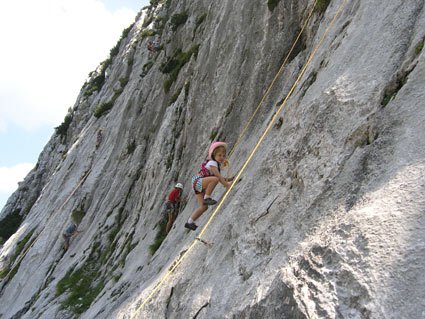 Schöner Klettergarten, der vor allem die Kletterer im unteren Schwierigkeitsgrad anspricht! Selten findet man so liebevoll hergerichtete Anstiege, die auch für Anfänger problemlos machbar sind. Die Routen sind Plattenklettereien, meist auch wunderbare Wasserrillen. Nach langen Regenfällen oft länger nass, perfekt gesichert und Abstieg durch Abseilen über die Routen.