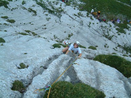 Doppelseil (im Idealfall 50 m) , 12 Expressschlingen und Helm.