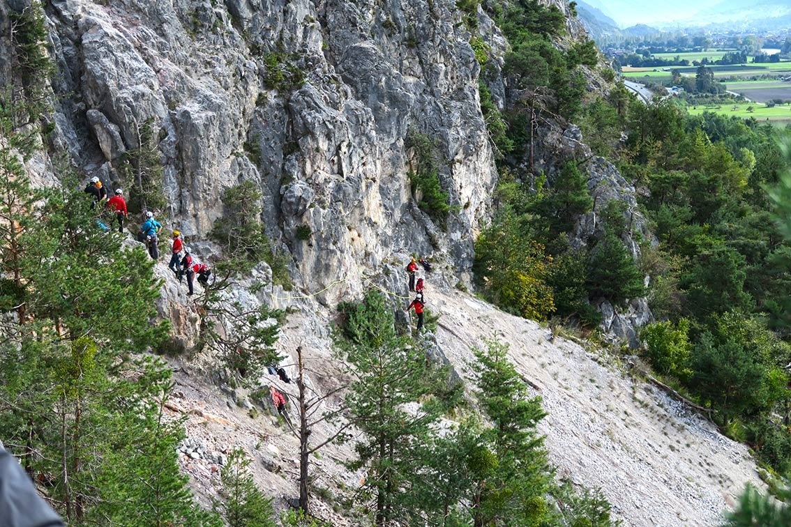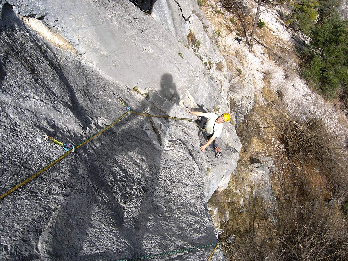 Man sollte einen Helm aufsetzen - oberhalb an der Geierwand ist vor allem durch die Klettersteiggeher (Geierwand Klettersteig) viel Betrieb.