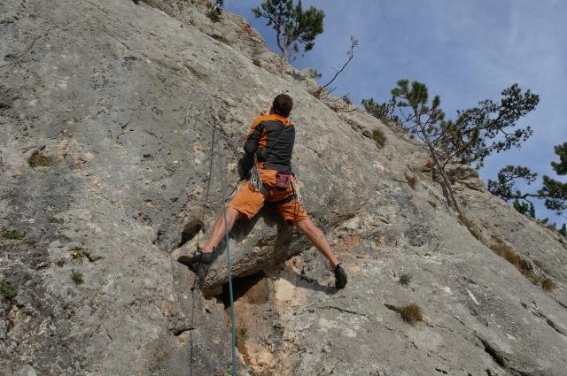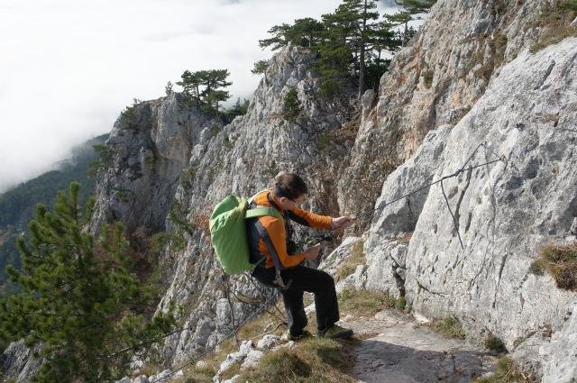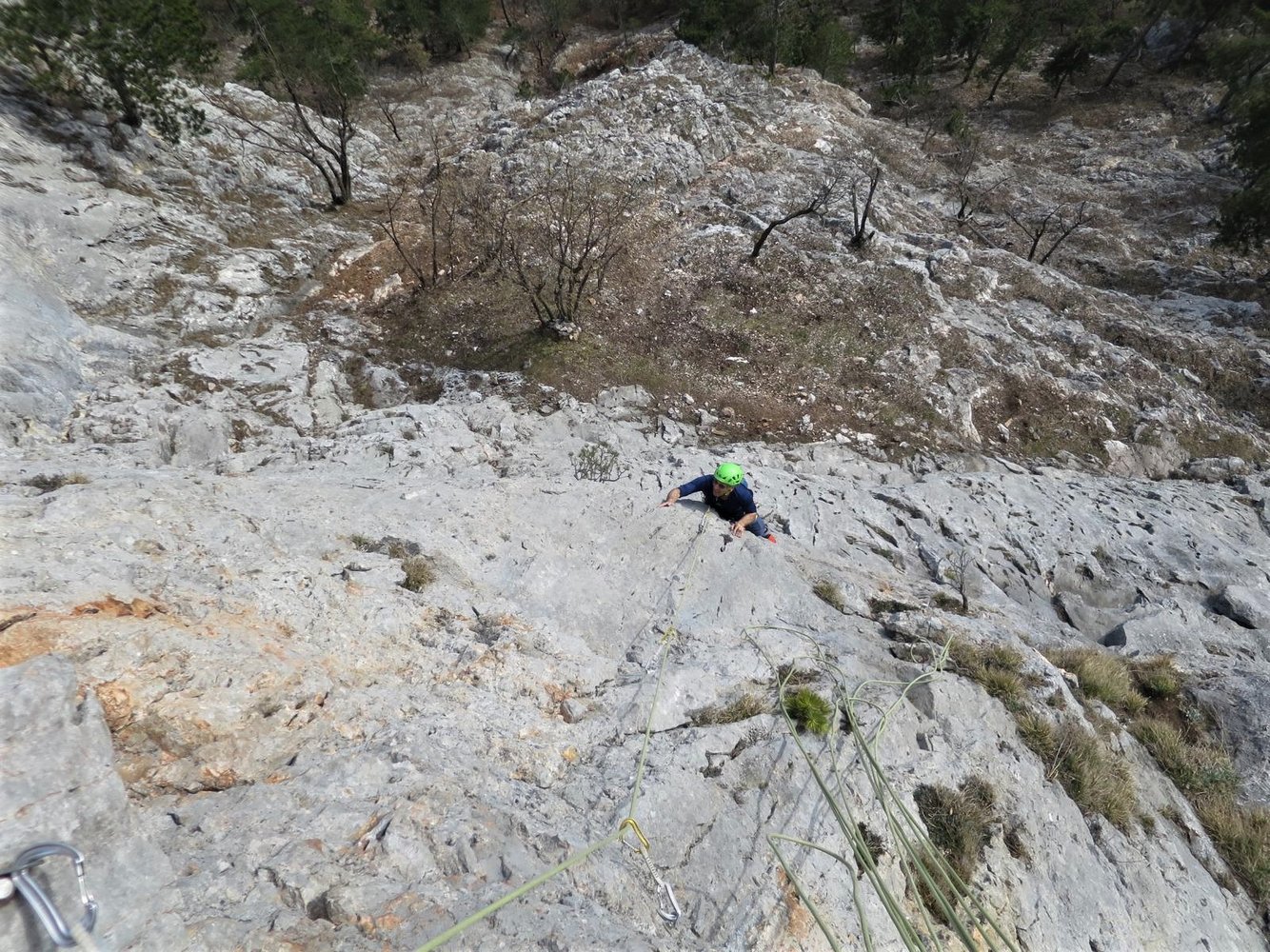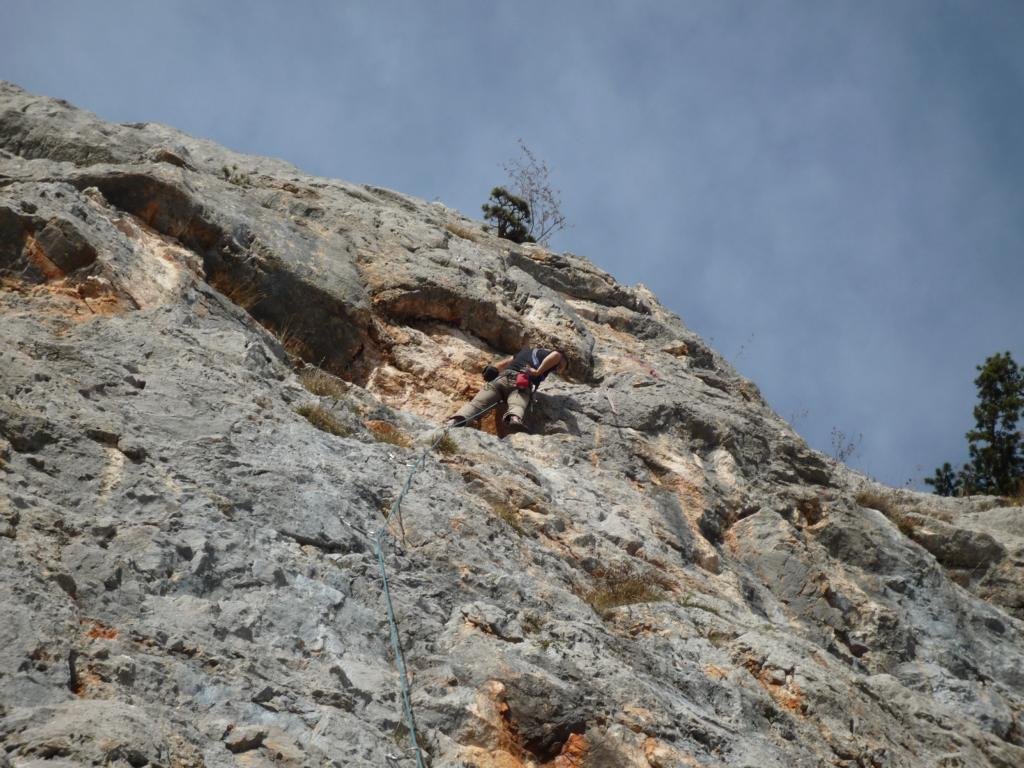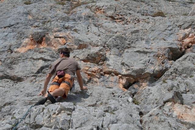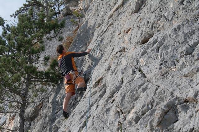 Nicht immer gut gesichert, tw. weitere Hakenabstände.