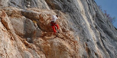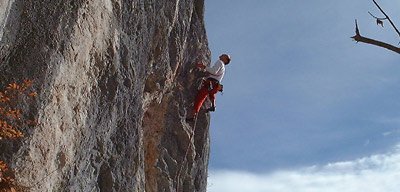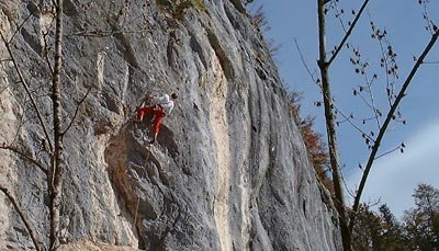 Sehr schöne und sonnige Wand für Frauen/Männer ab dem 8ten Grad. Es dominiert Wandkletterei an Leisten, Löchern und Sintern und in der kleinen Höhle wartet ein Superhammer von K. Reicht. Nur etwas für kalte Tage (Winter). 70 m Seil mitnehmen!