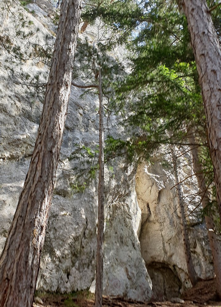 Vom Parkplatz der Gr. Klause dem Wanderweg aufwärts bis sich nach der ersten Leiter der Graben weitet. Dort wo er sich wieder mit Felsen schließt (hier gibt es auch einige Routen) geht ein Steiglein links und wieder leicht zurück aufwärts.
