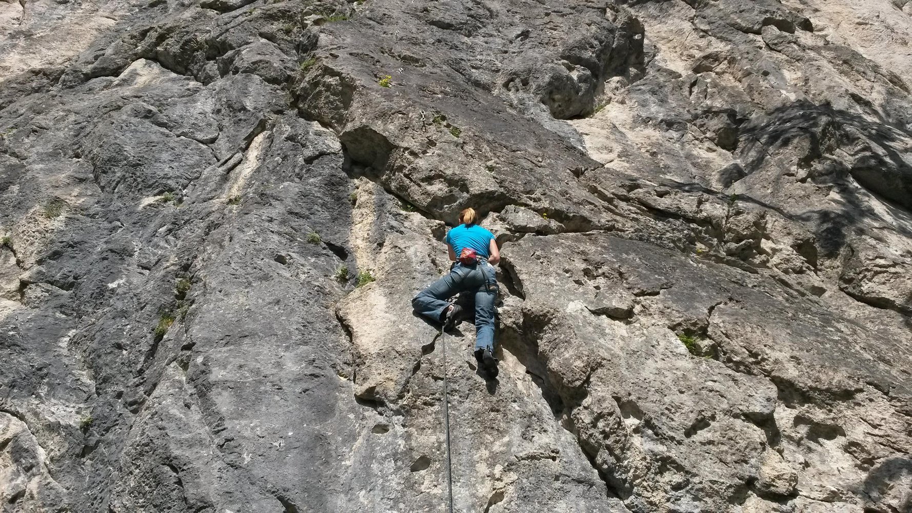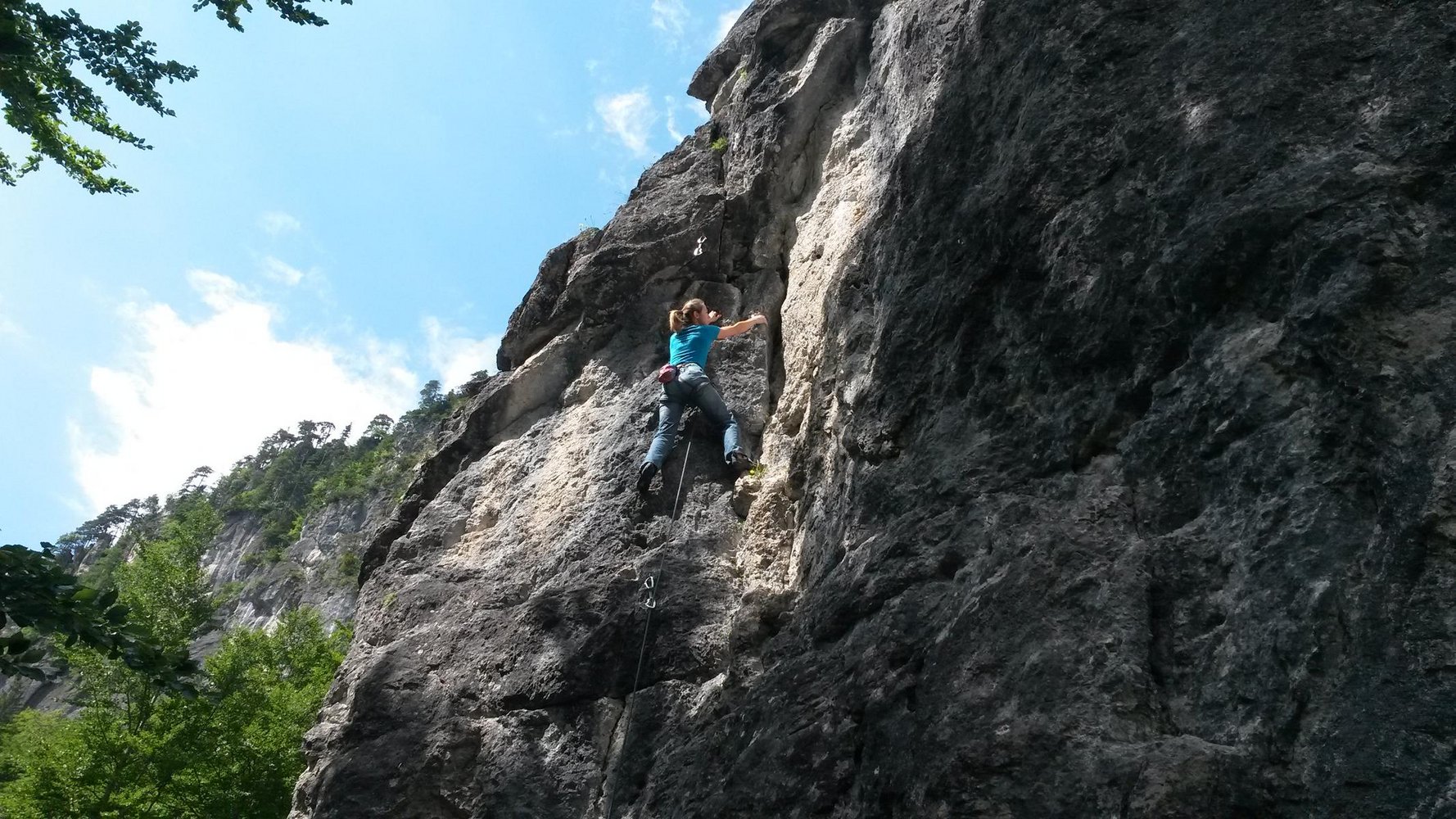 Kletterausrüstung und Helm (Helm, da es in diesem Gebiet auch Mehrseillängentouren und einen Klettersteig gibt und daher auch Leute weiter oben klettern!)