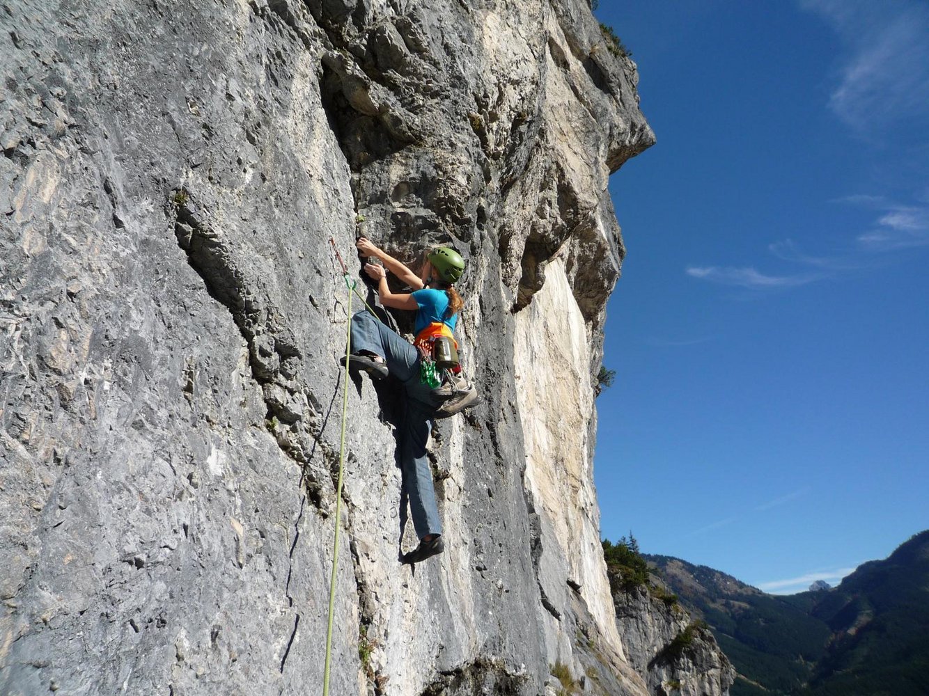 Aufgrund der Mehrseillängentouren und des Klettersteiges empfiehlt sich das Tragen eines Helms.