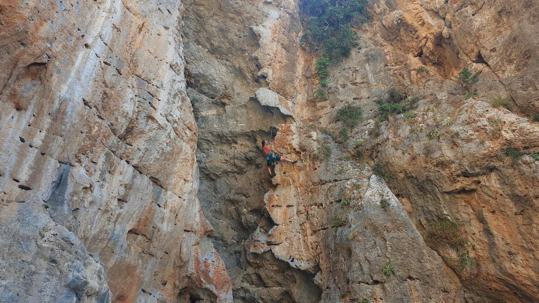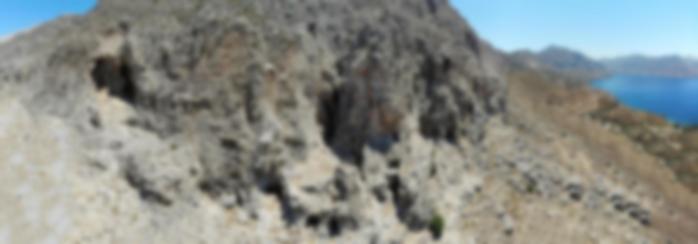 Der Felszug oberhalb Emborios, bestehend aus Kreissal, der Kastri-Burg. Ein guter Kletterspot für den Winter. Die Ruinen der antiken Burg Kastri bieten eine nette Kulisse. Die Routennamen sind hier nur vereinzelt an den Einstiegen zu finden. Hinsichtilich Kletterei dominiert scharfe, fester Kalk mit guten Griffen.
