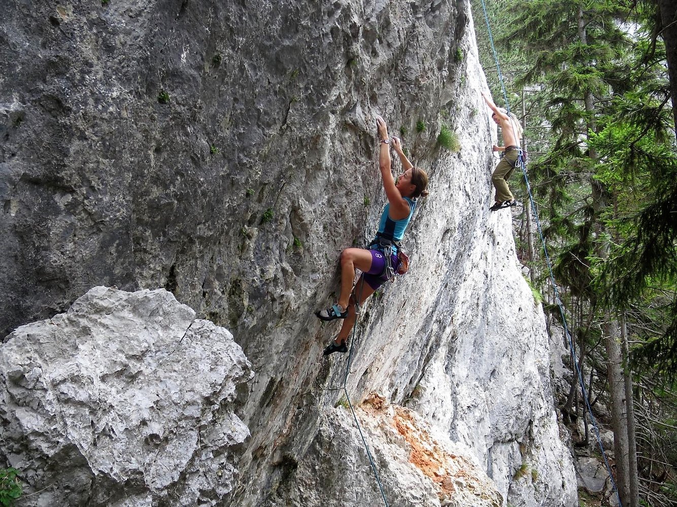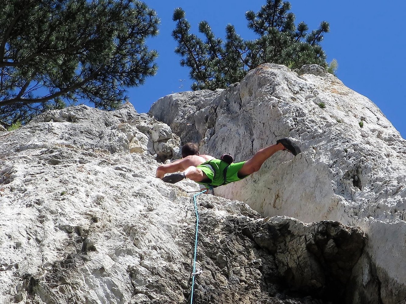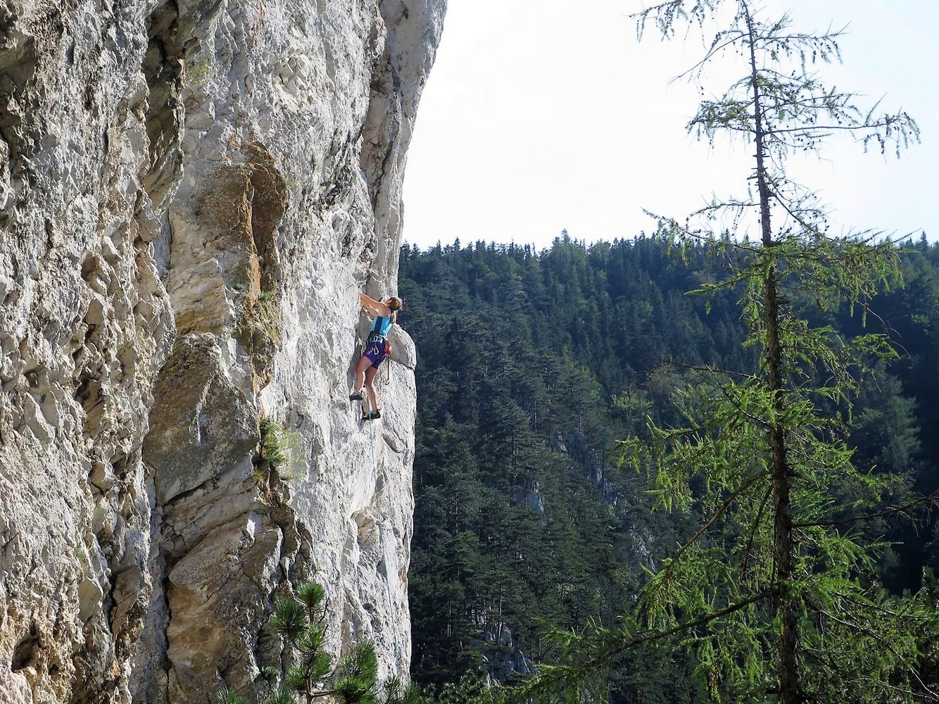 Toller Klettergarten mit drei Sektoren - Badener Turm, Platte und Überhang. Am Badener Turm dominiern lange, steile und auch nicht immer ganz feste Routen, auf der Platte Genusskletterei bis 7+/8- und am ersten Sektor, dem Überhang steile Wandkletterei. Die Sektoren sind ab ca. 14 Uhr in der Sonne, wobei bei Platte und Überhang Bäume am Einstieg Schatten geben.