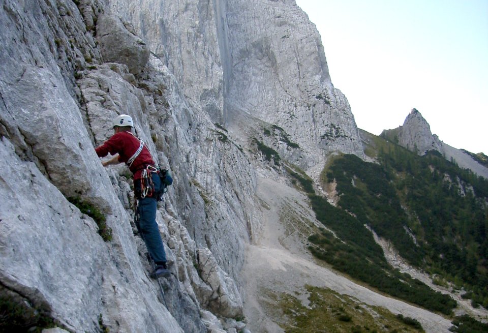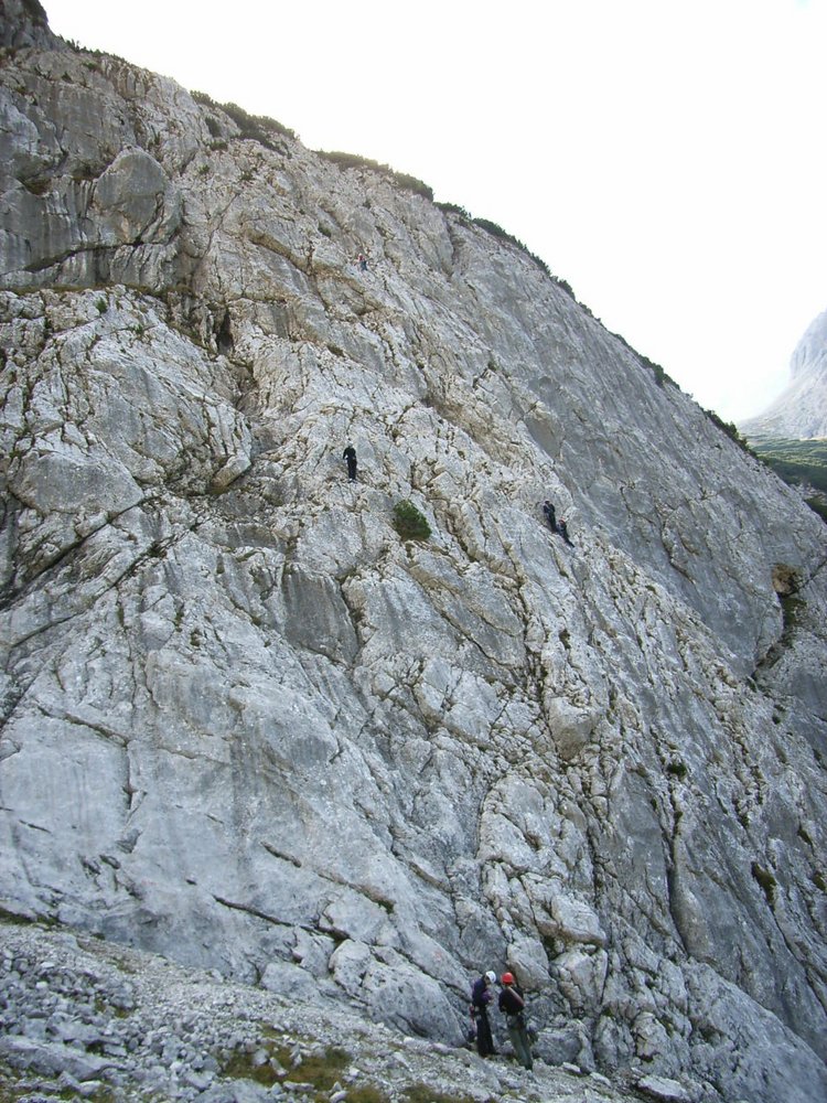 Abstieg durch Abseilen üder die Routen. (Doppelseil oder 70m Seil empfehlenswert!)