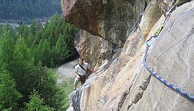 Von der Moosalm dem Fahrweg nach dem Schranken (Schild Klettersteig bei der Alm ) folgen und in einer Kehre rechts zu den Felsen.