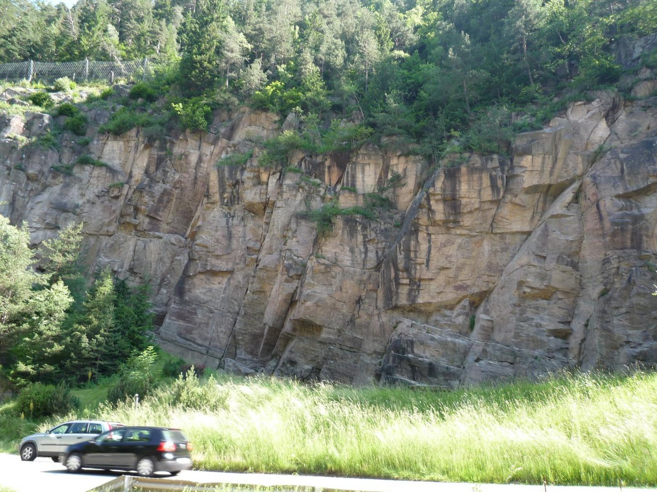 Von Klausen nach Gröden und kurz vor St. Ulrich sieht man die Wand links neben der Straße.