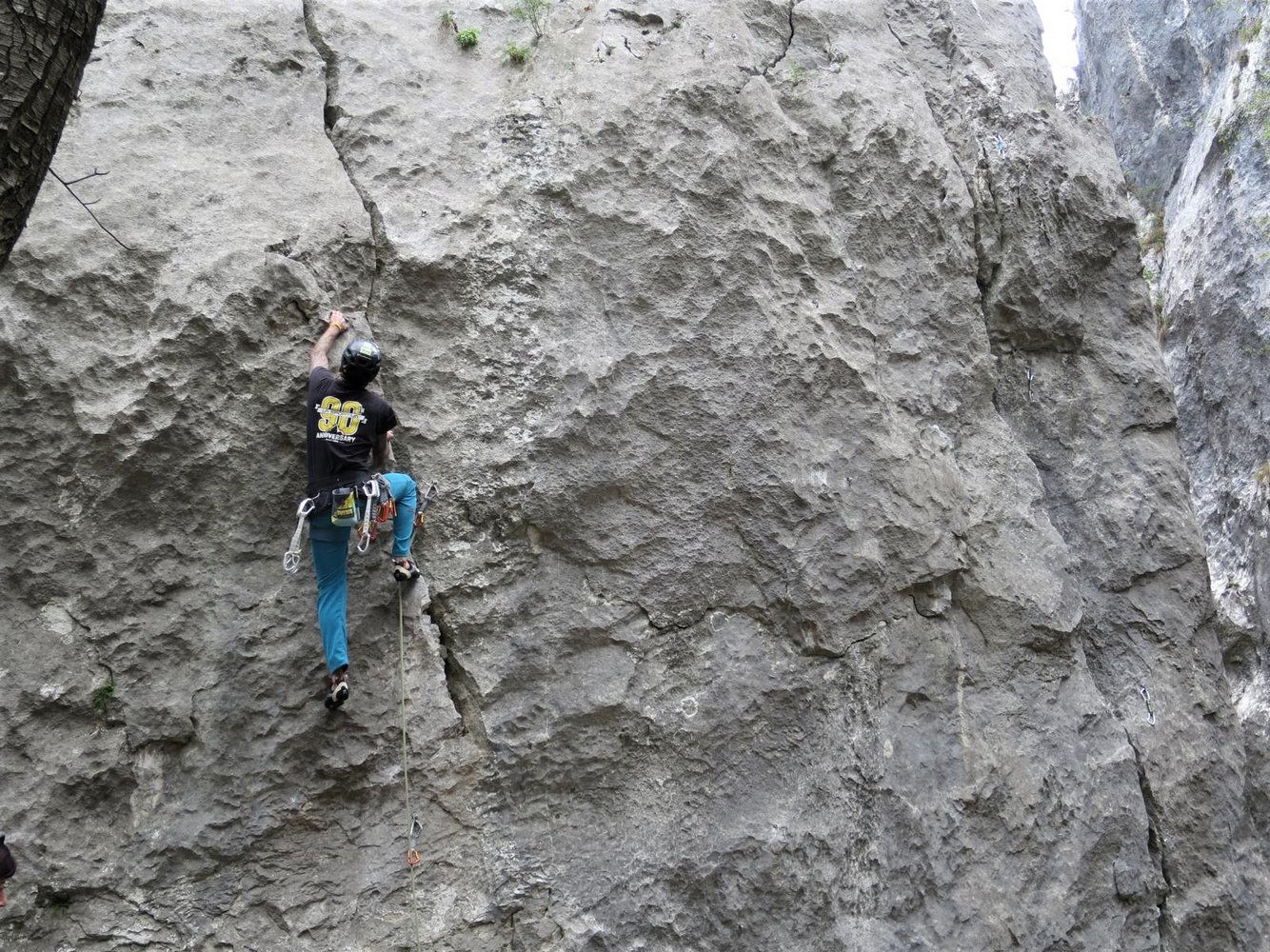 1) Wer davor im Hauptsektor von Nago klettern möchte, nimmt den Zustieg zwischen Sektor Centrale und Sektor Alto. Folgt dem mit Steinmännern markierten Pfad bergauf bis zum Wanderweg und folgt diesem bis zur Abzweigung (Steinmann), kurz danach sind große Plattformen einer alten Festungsanlage, hier ist man schon zu weit;-). (20 Min.)