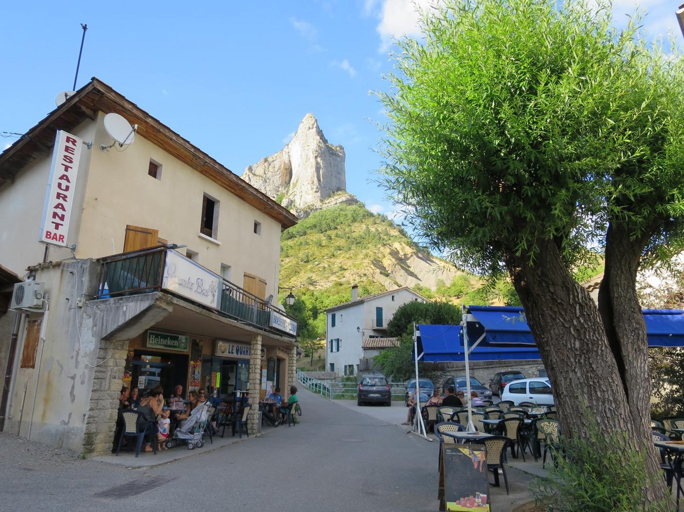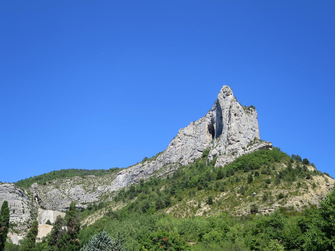 Mehrseillängen Klettern am Quiquillon in Orpierre. Die Felsnadel sticht bereits im Ort ins Auge. An der Westseite gibt Mehrseillängenrouten und an der Südostseite ein Sektor mit lohnenden Sportkletterouten.
