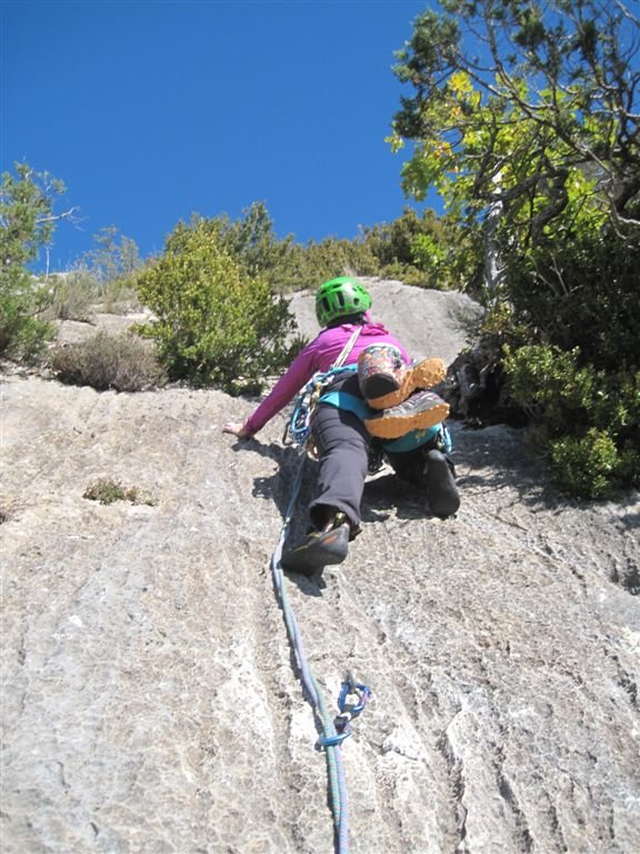 Kletterausrüstung und für machen Mehrseillängen-Routen Helm und teilweise auch Keile. Für die Mehrseillängen-Kletter- Routen ein Doppelseil.