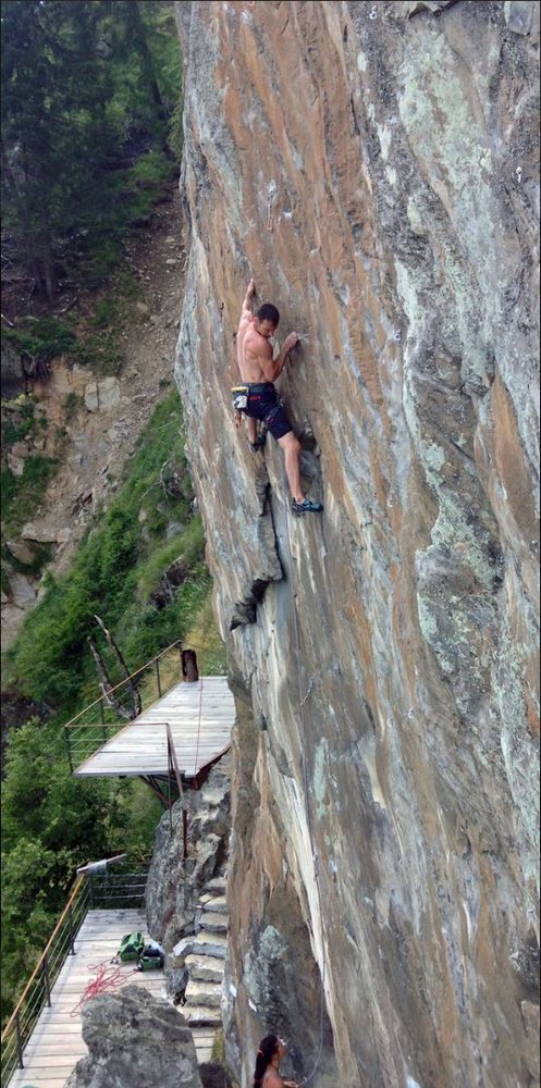 1. Bequem über die Panorama-Seilbahn Texelbahn in Partschins zur Bergstation. Gleich unterhalb der Bergstation führt ein Steg bergab (Wanderweg Nr. 2 / Verbindungsweg Durster-Giggelberg). Diesem folgt man ca. 5 Minuten, bis man zu einem Steinmännchen kommt. Dort rechts abbiegen und dem Steig weitere 3 Minuten bis zum Wandfuß folgen.