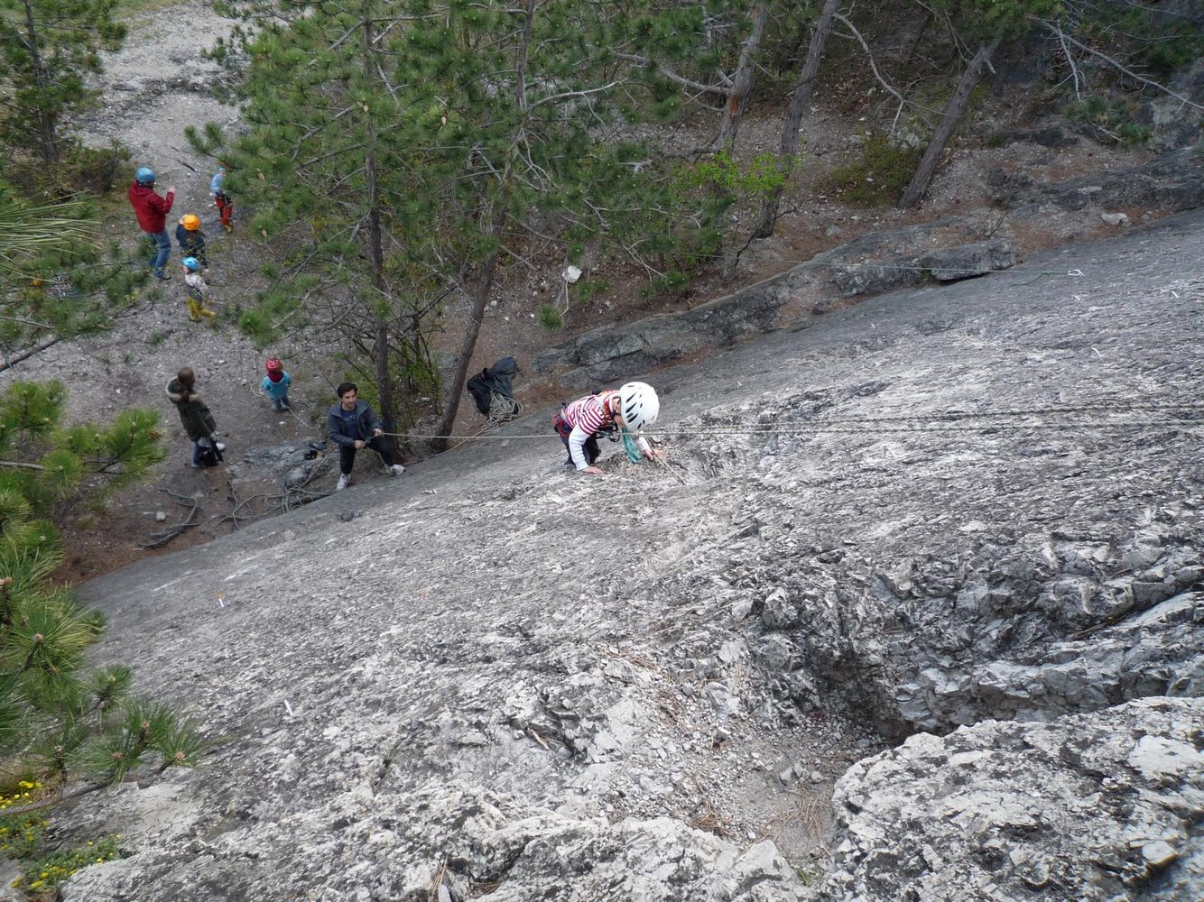 Gut auch um Tope-Rope zu klettern, da man die Ausstiege unschwierig von rechts erreicht.