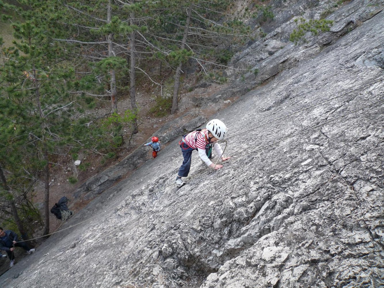 Sehr gut mit Bohrhaken und Umlenkern.
