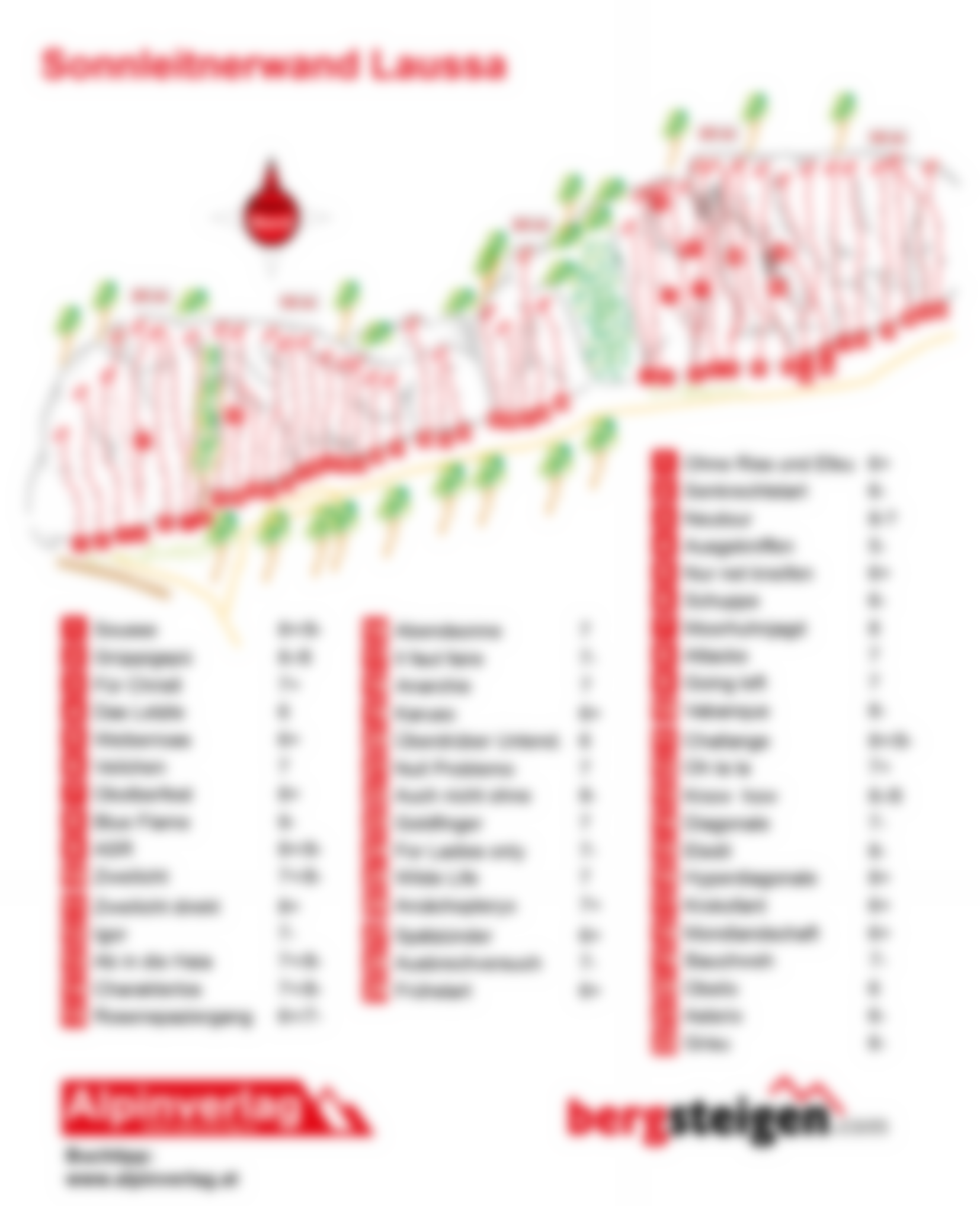 Direkt über dem Gasthaus Sonnleitner im Ortsgebiet von Laussa befindet sich diese tolle überhängende Wand mit rd. 50 Routen hauptsächlich im Schwierigkeitsbereich 6 bis 7+. In diesem Schwierigkeitsbereich sicher eine der besten Wände im Ennstal! Es dominiert athletische Kletterei. Die Wand ist perfekt für heiße Tage und auch bei Regen.