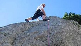 Sportkletterausrüstung + Helm; es können bis zu 17 Expressschlingen angewandt werden.