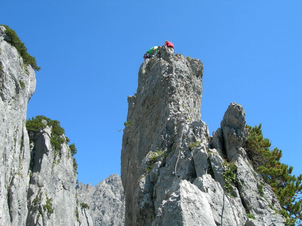 Großes Sportklettergebiet in unmittelbarer Nähe der bekannten Bischofsmütze! Dem Hüttenwirt Heinz Sudra ist es zu verdanken, dass es eine derart große Auswahl von Routen in allen Schwierigkeitsgraden gibt. Vom 1er für Kinder bis zum oberen 9. Grad gibt es unzählige Möglichkeiten, so dass auch bei einem längeren Hüttenaufenthalt keine Langeweile aufkommt. Und wer dann doch einmal auf einen Gipfel will, hat wiederum die Qual der Wahl - Bischofsmütze, Großwandeck und Kopfwand sind nur einige der Ziele, die über (alpine) Mehrseillängen-Routen erklommen werden können.