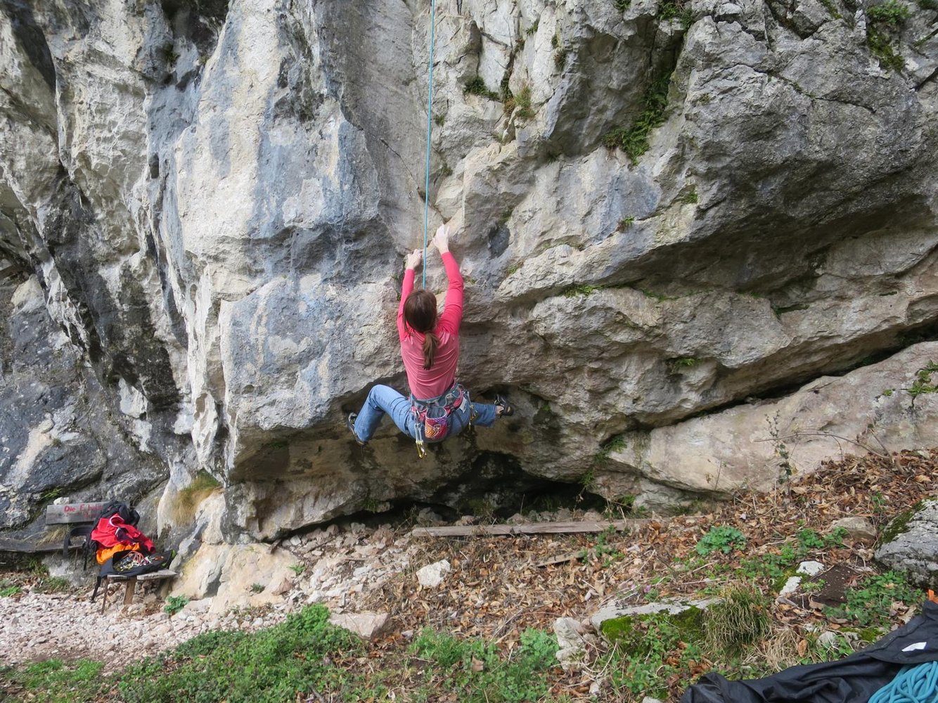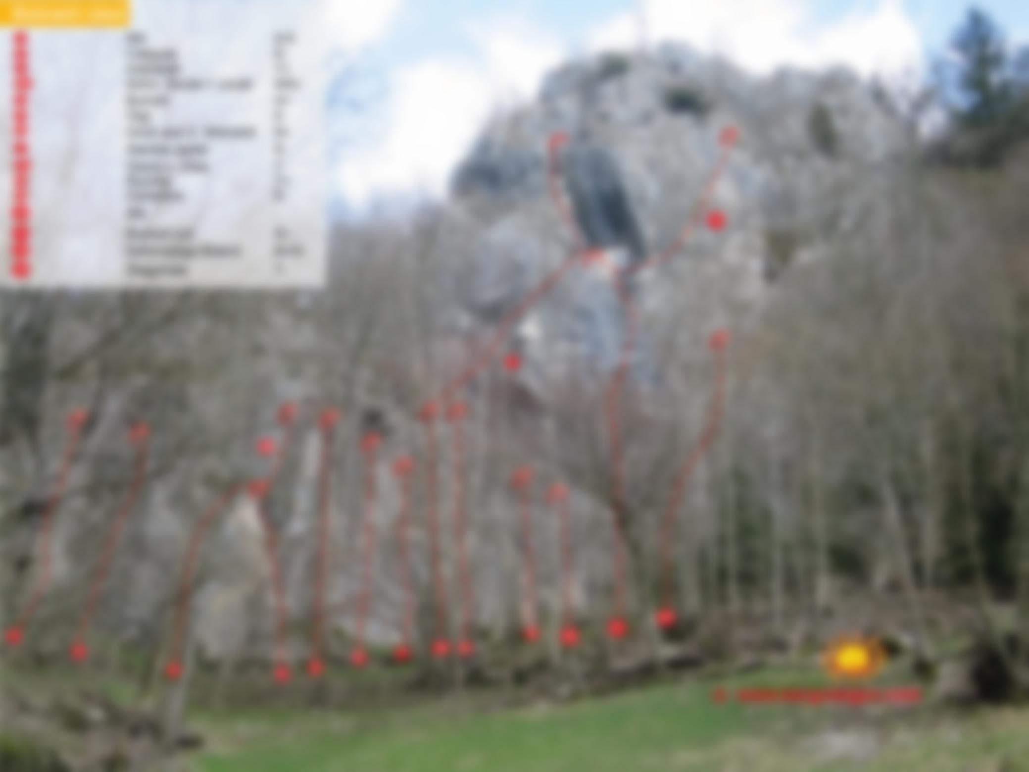 Die Wiese am Fuß der Wand wird landwirtschaftlich genutzt, deshalb bitte nur die bereits vorhandenen Wege benutzen und nicht durch die Wiese laufen, auch sonst wie überall auf Sauberkeit im Klettergarten achten.