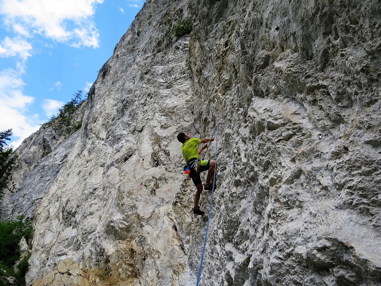 Wenn jemand in der Mehrseillängentour im rechten Wandteil kletter, dort Vorsicht auf Steinschlag!!