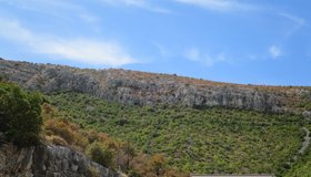 Nordseitiger Klettergarten über dem Tunnel Stari Grad - Milna, gut für warme Tage, da immer im Schatten. Es gibt hier 20 Routen.