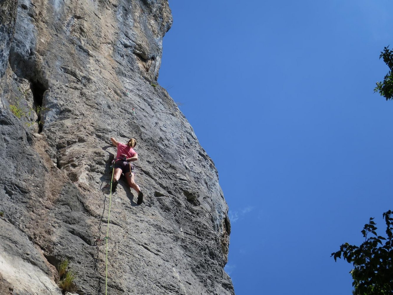 Schöner, sonniger Klettergarten über dem Ort Stenico. Die Routen sind gut gesichert und bieten abwechslungsreiche Kletterei an Tropflöchern und Sintern.