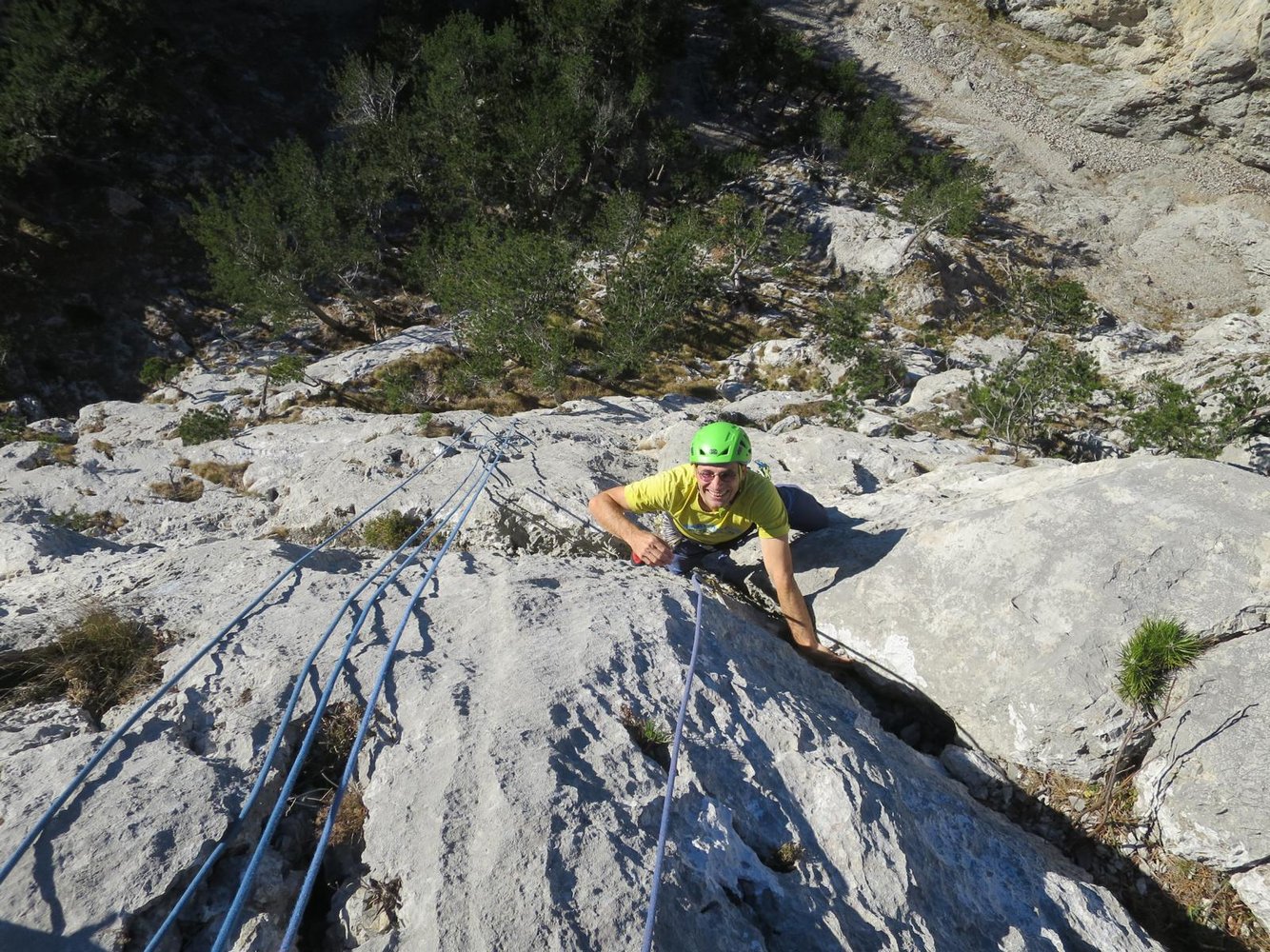 Kein Klettergarten für jemand der frisch aus der Halle kommt, angehende Alpinisten können hier aber einen wundervollen, ruhigen und insbesondere auch sonnigen Klettertag verbringen.
