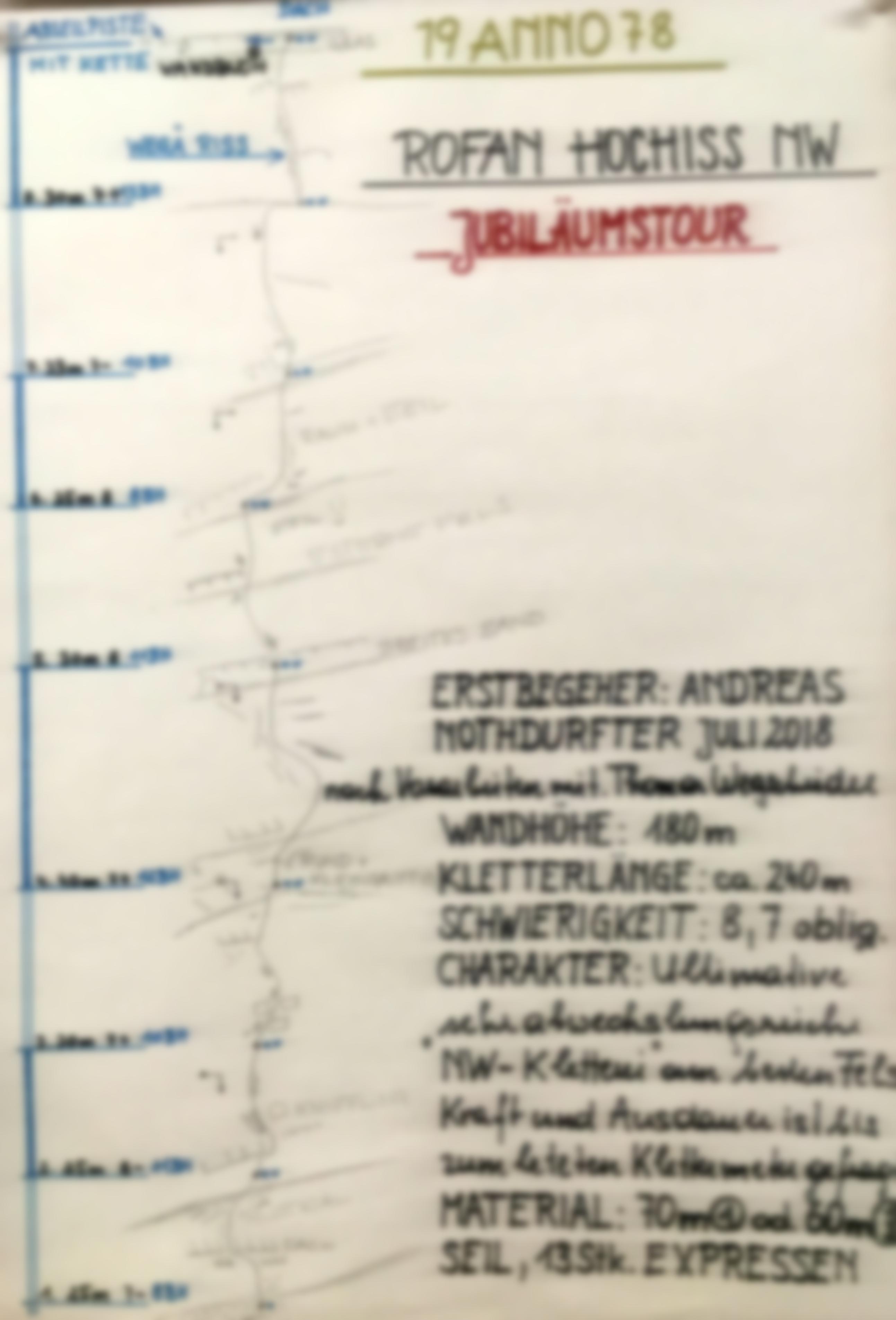 Von der Bergstation der Rofanseilbahn rechts vom Gschöllkopf vorbei und Richtung Hochiss folgen. Am Gamshals (Scharte wo der Klettersteig vom Spieljoch beginnt) steigt man in NW Richtung zu den ersten Felsen die am Grat Richtung Hochiss zeigen auf. (vom Gamshals ca. 70 HM) dann sieht man eine markante Nirostertafel "Abseilpiste Hochiss" 3m dahinter ist die erste Standplatzkette zum abseilen.