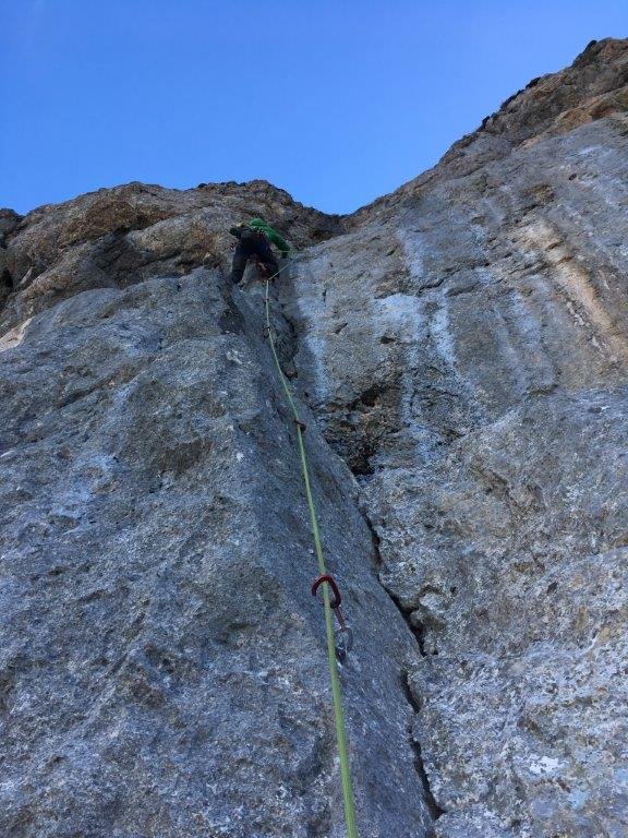 Ultimative und sehr abwechslungsreiche Nordwand-Kletterei an bestem Fels. Kraft und Ausdauer sind bis zum letzten Klettermeter gefragt.