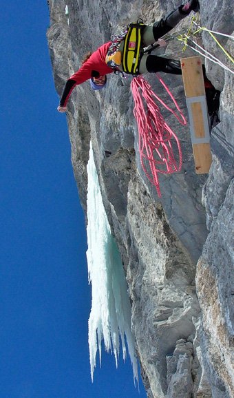 Über Abseilpiste 10 m unterhalb der Seilbahnmasten.
