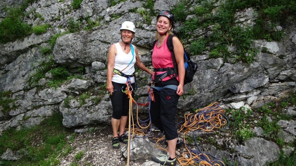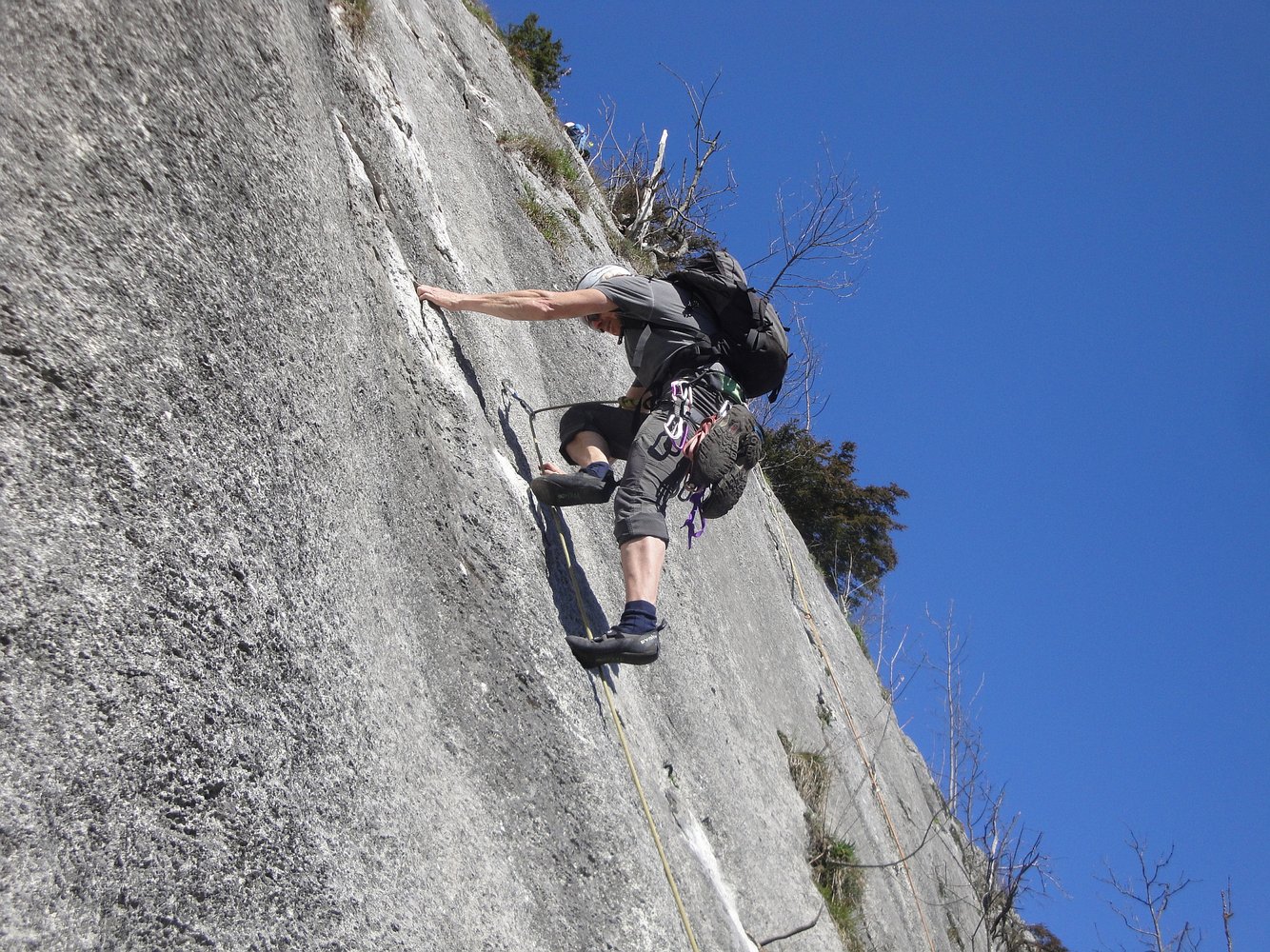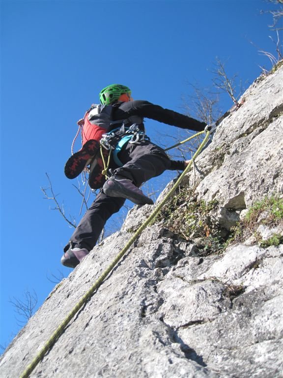 Einfachseil, 10 Expr. Schlingen, Sanduhrschlingen und Helm.