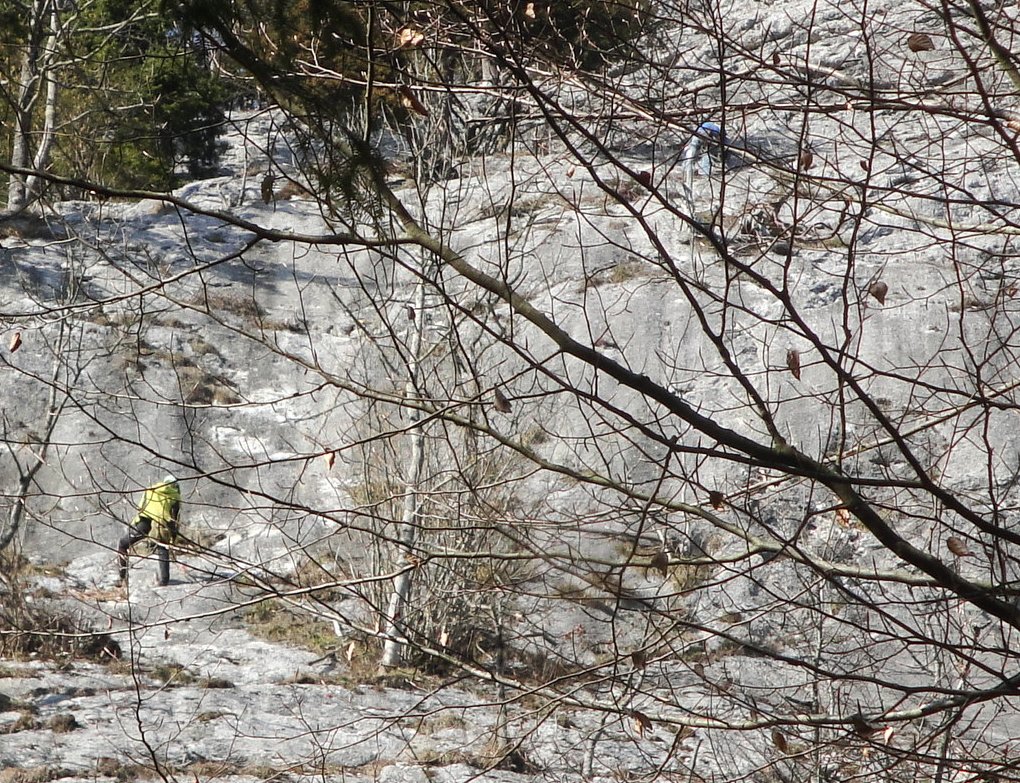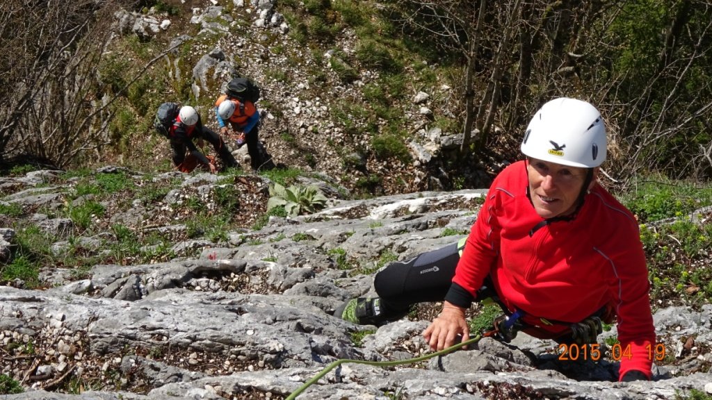 2 Stellen 4+, meist 3-4. Unten beim Einstiegspfeiler linke Variante 5-, rechte Variante 3.