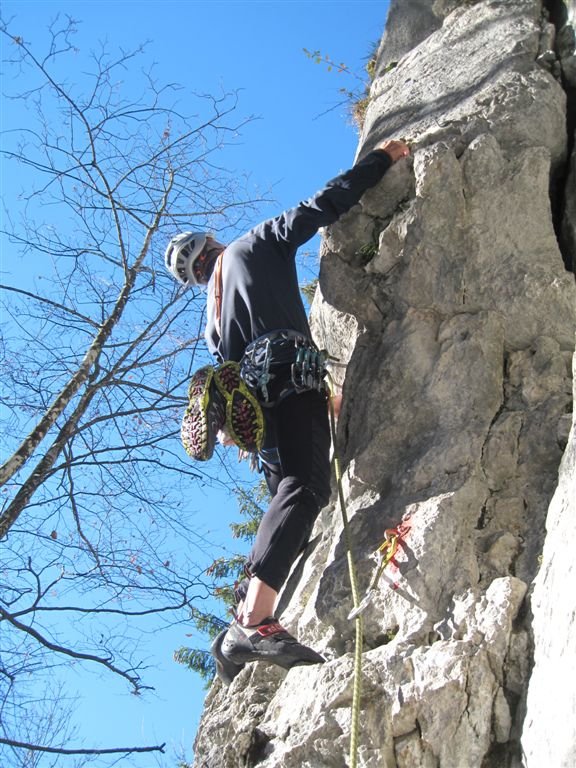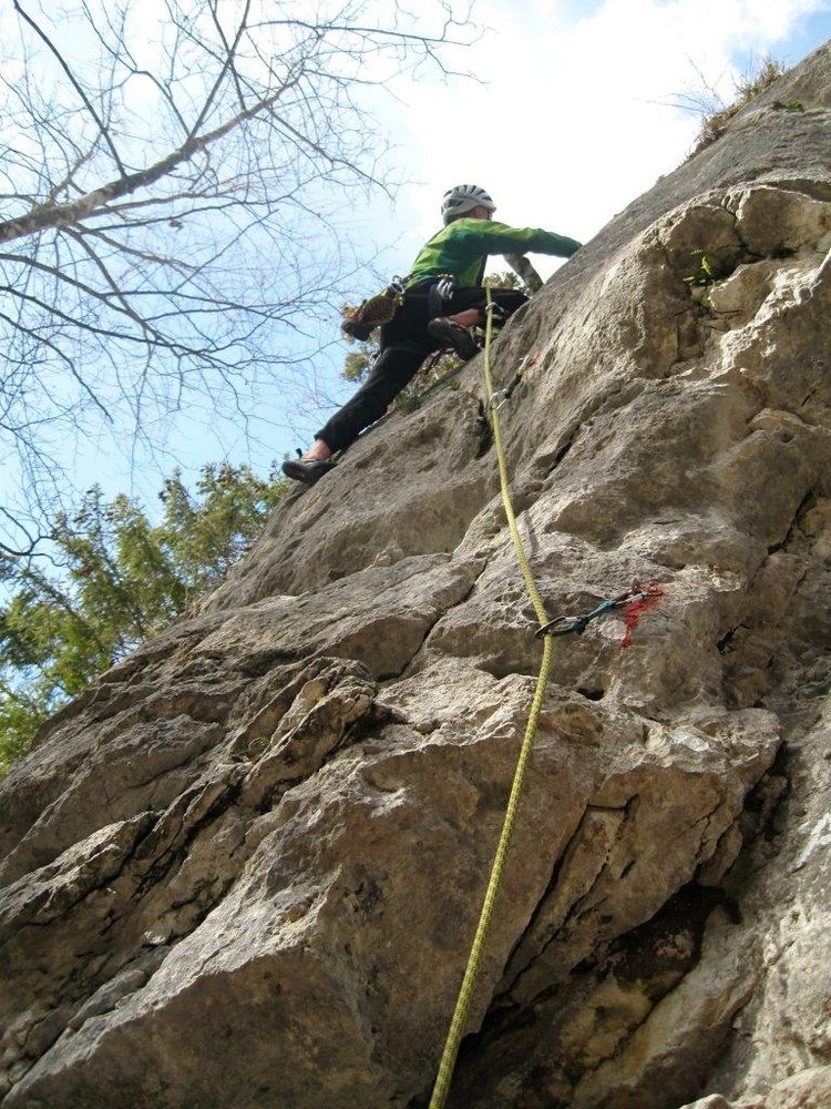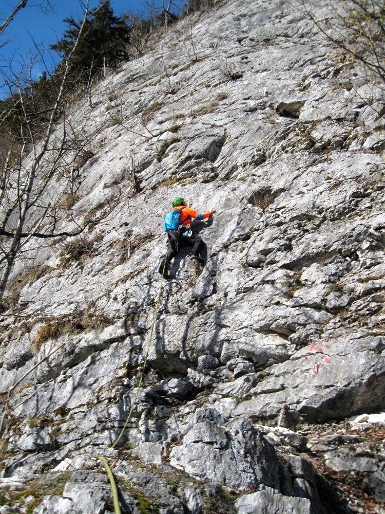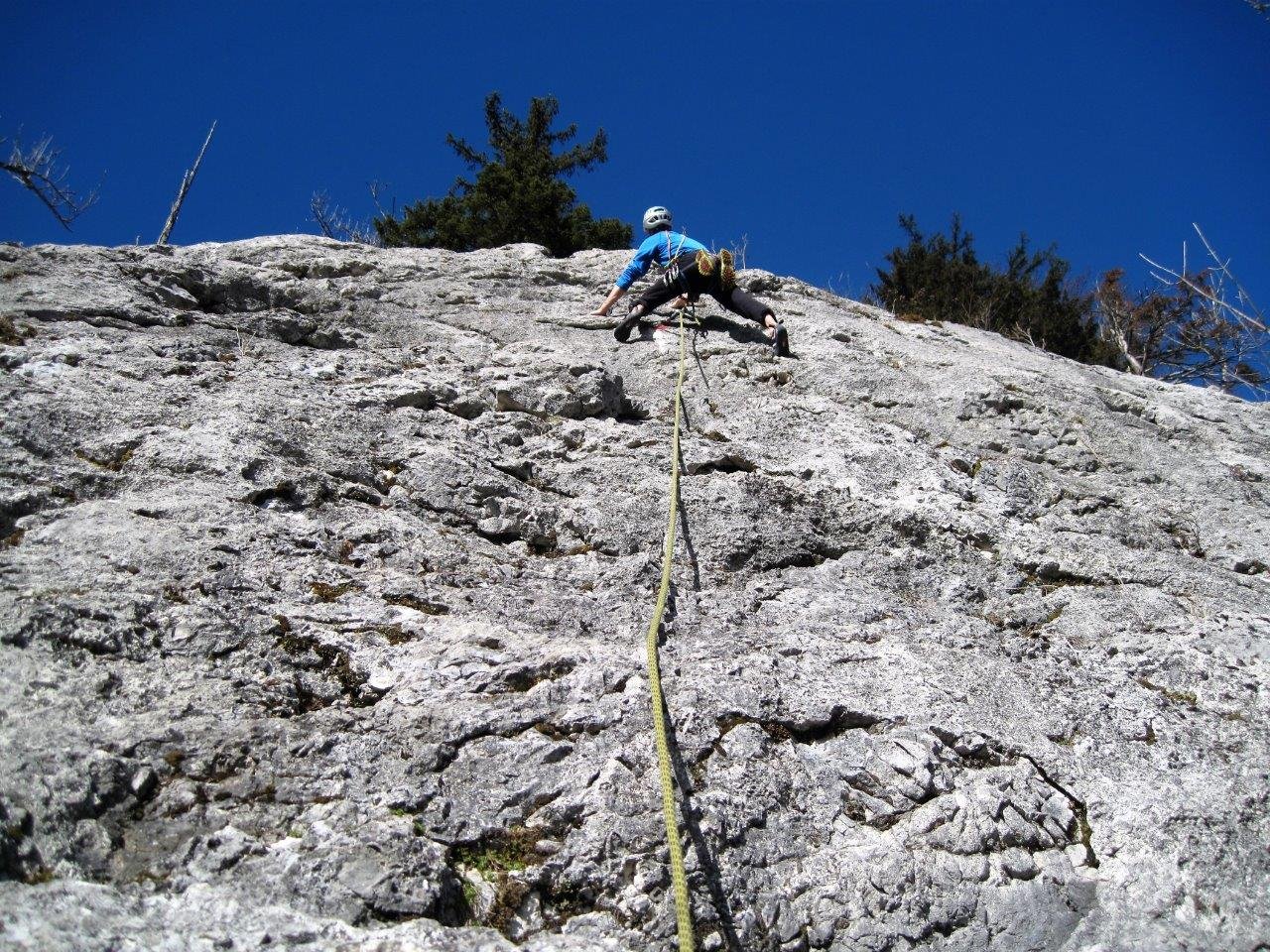 Schöne und gut gesicherte Klettertour links der beliebten Route "Flipperl". Der Anstieg nutzt ähnlich wie die "Flipperl" die gute, kompakte Plattenzone aus. Die Schwierigkeit lässt sich mit Hakenhilfe auf 4 reduzieren, somit ist diese Tour auch für Klettereinstieger nicht uninteressant.