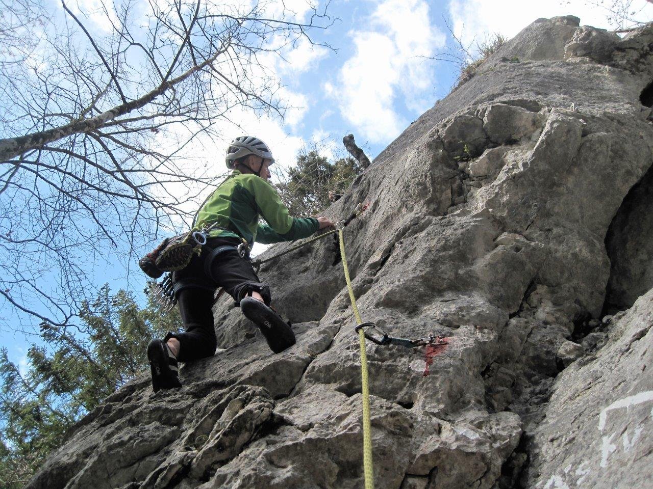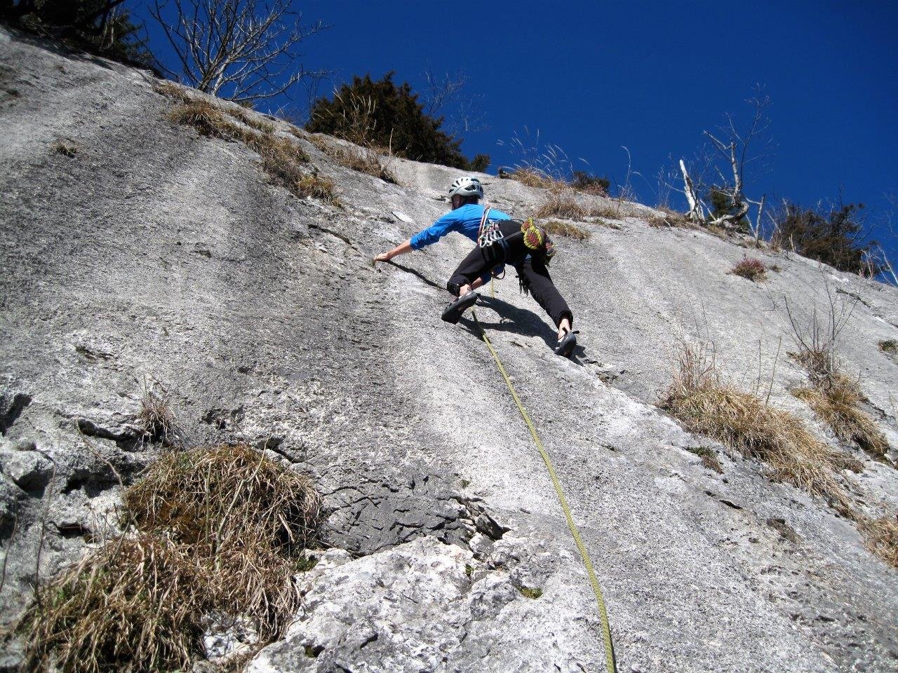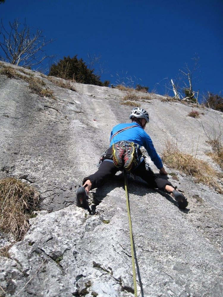 Schöne und gut gesicherte Klettertour links der beliebten Route "Flipperl". Der Anstieg nutzt ähnlich wie die "Flipperl" die gute, kompakte Plattenzone aus. Die Schwierigkeit lässt sich mit Hakenhilfe auf 4 reduzieren, somit ist diese Tour auch für Klettereinstieger nicht uninteressant.