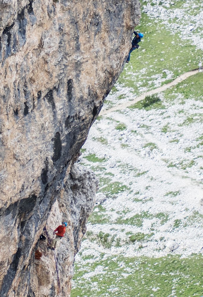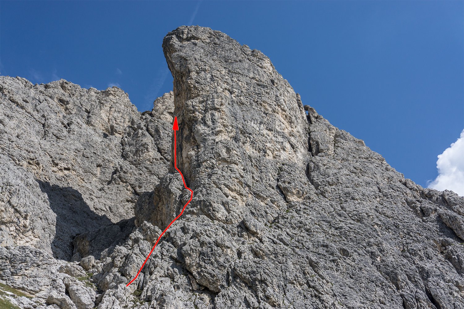 Von hier dem Weg 452 bis unter die Südwand des Torre Anna gehen. Die letzten 5 Minuten weglos zum Einstieg rauf (ganz links unter der Südwand. Man muss wirklich aufpassen, dass man beim Turm nicht vorbei läuft. Die Wand ist sehr gut versteckt (sonst wäre sie wohl schon früher eingebohrt worden).