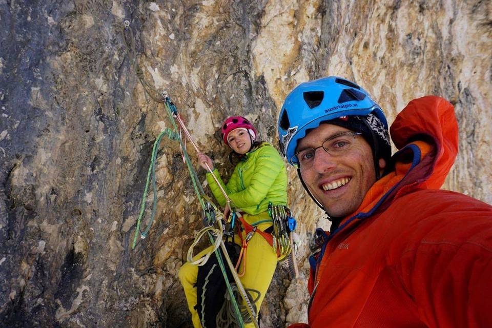 Über die Tour Abseilen oder auf über Normalweg an der Hinterseite absteigen.