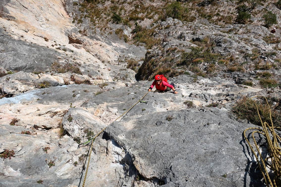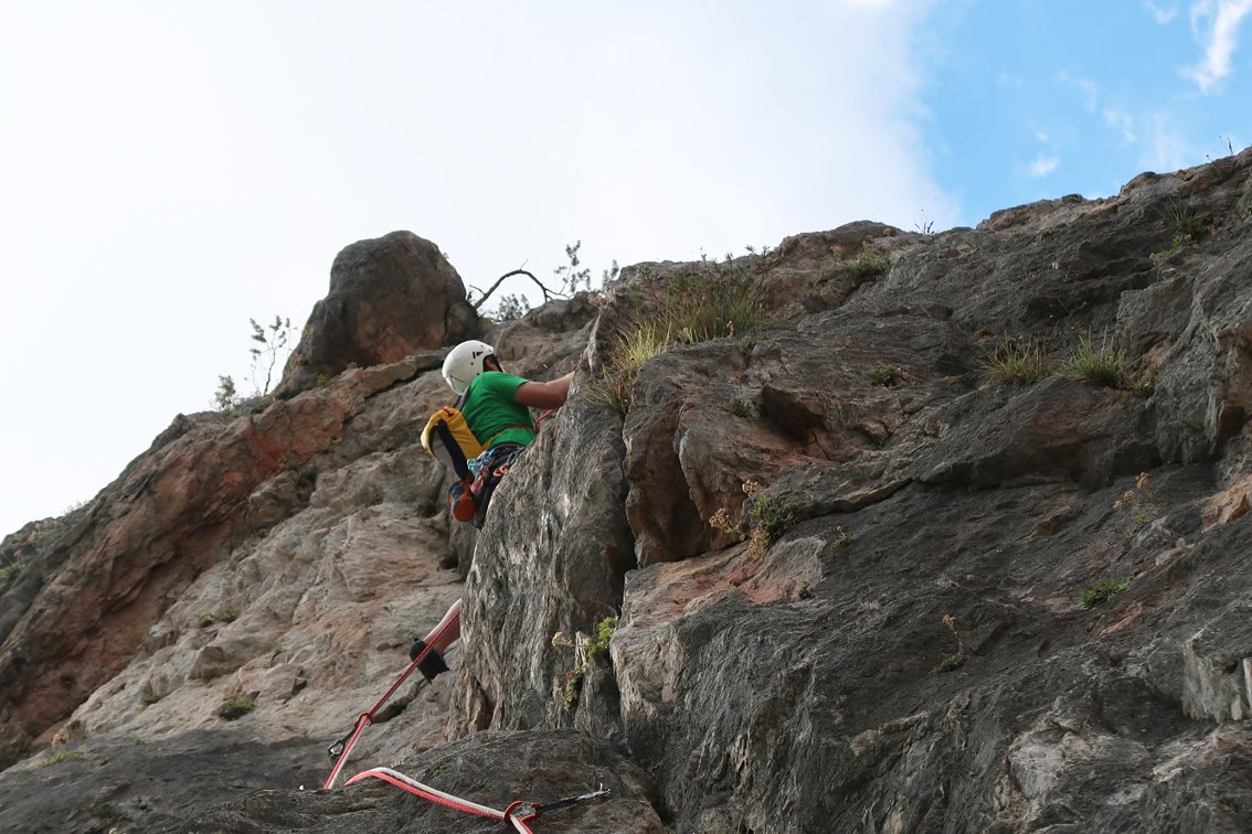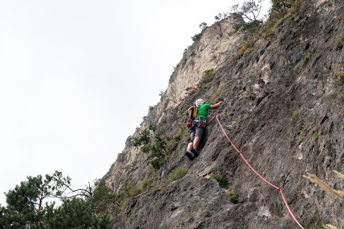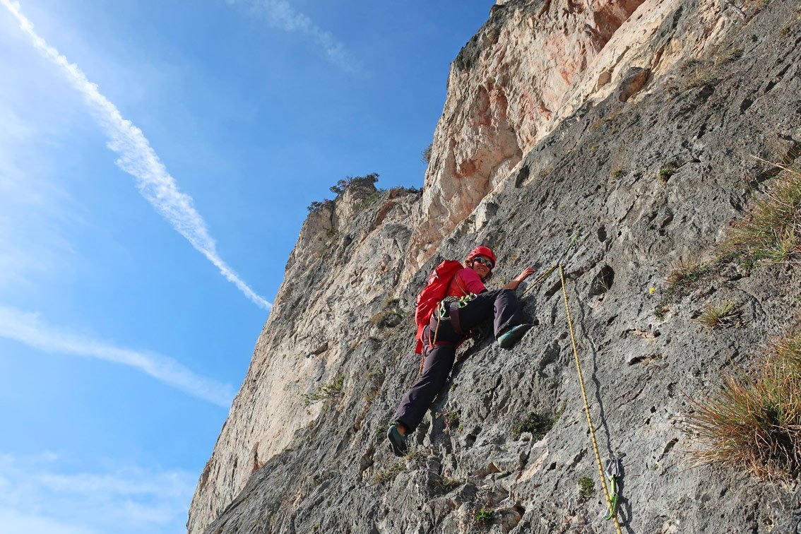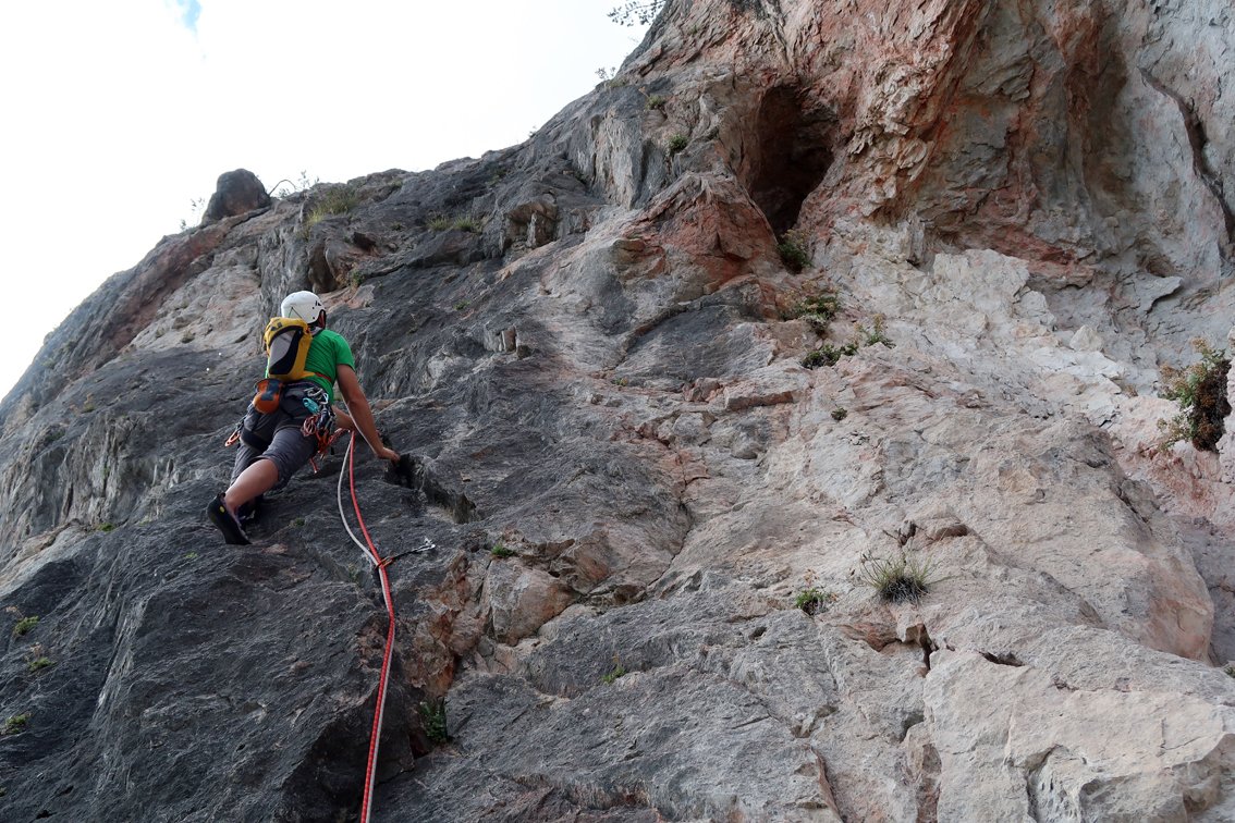Der Fels ist nicht immer fest. Die Absicherung ist jedoch sehr gut, deshalb stören die brüchigen Passagen auch weniger. Achtung: Die letzten 2 leichten Seillängen verlaufen durch Schotter - keine Steine lostreten!