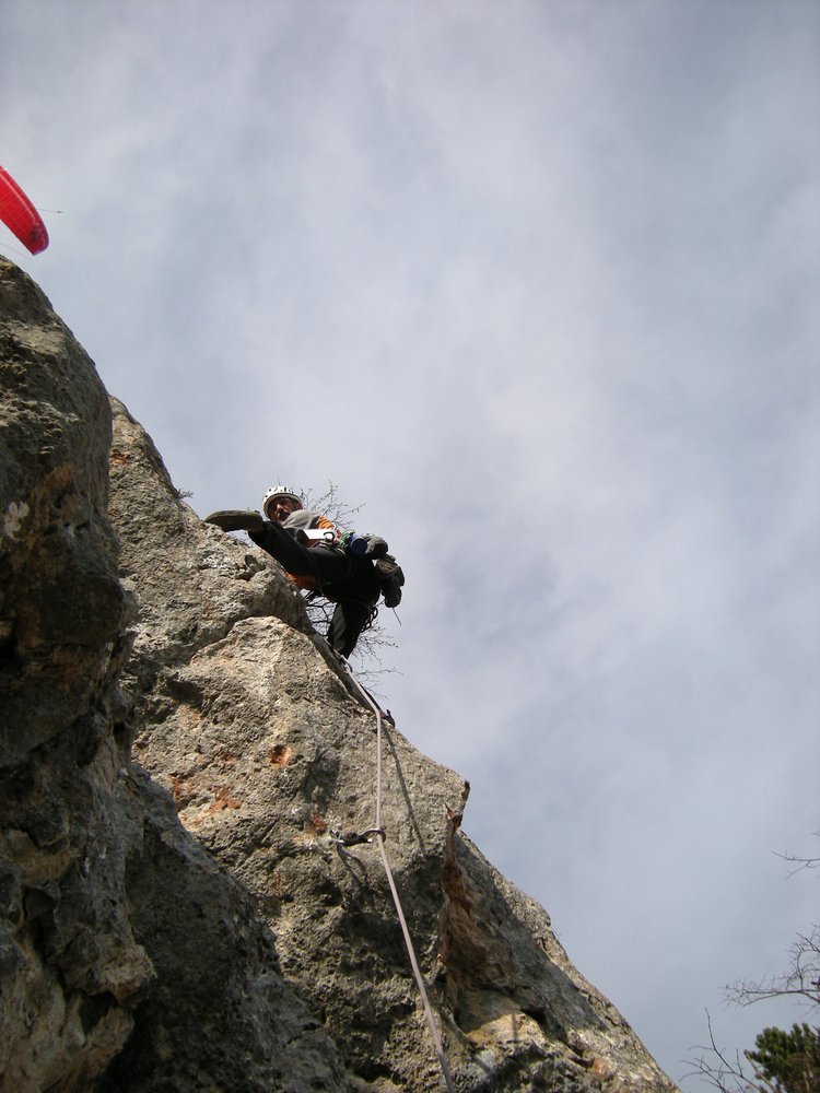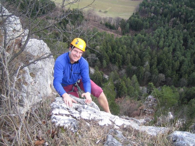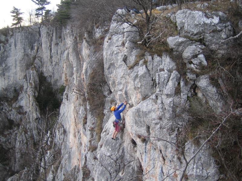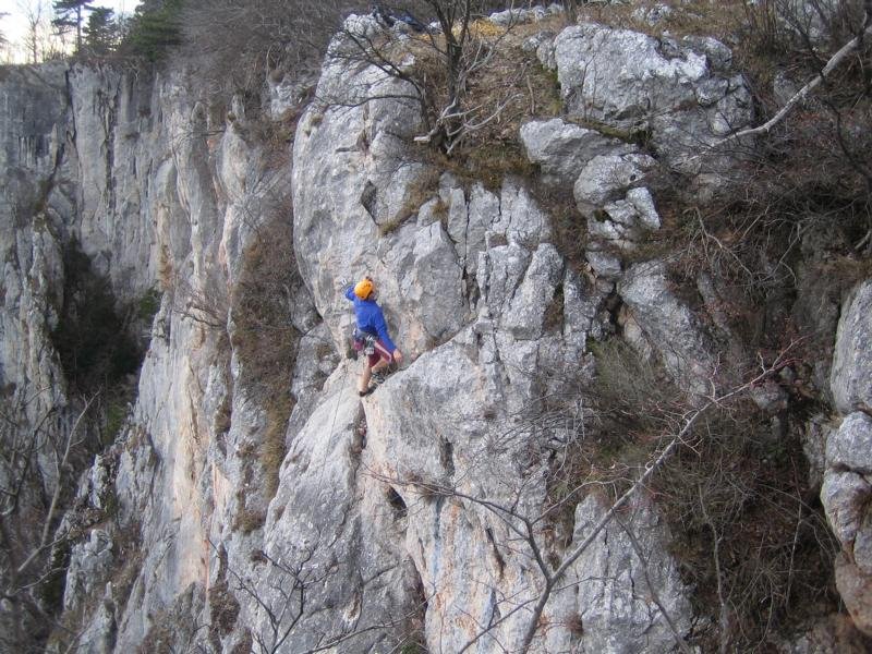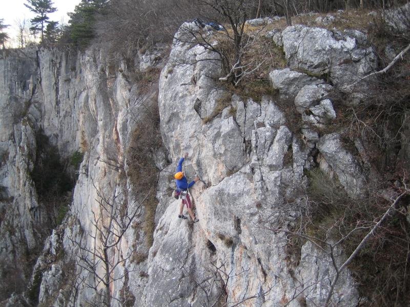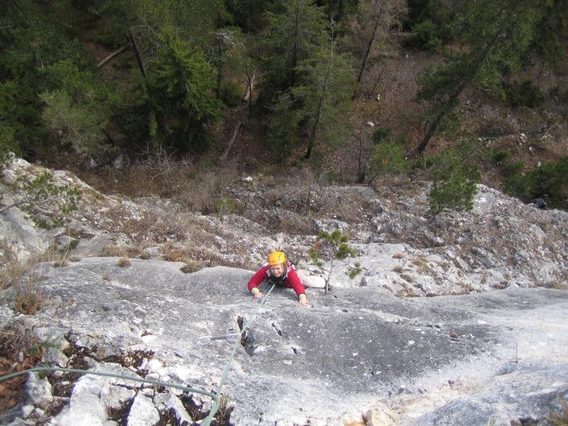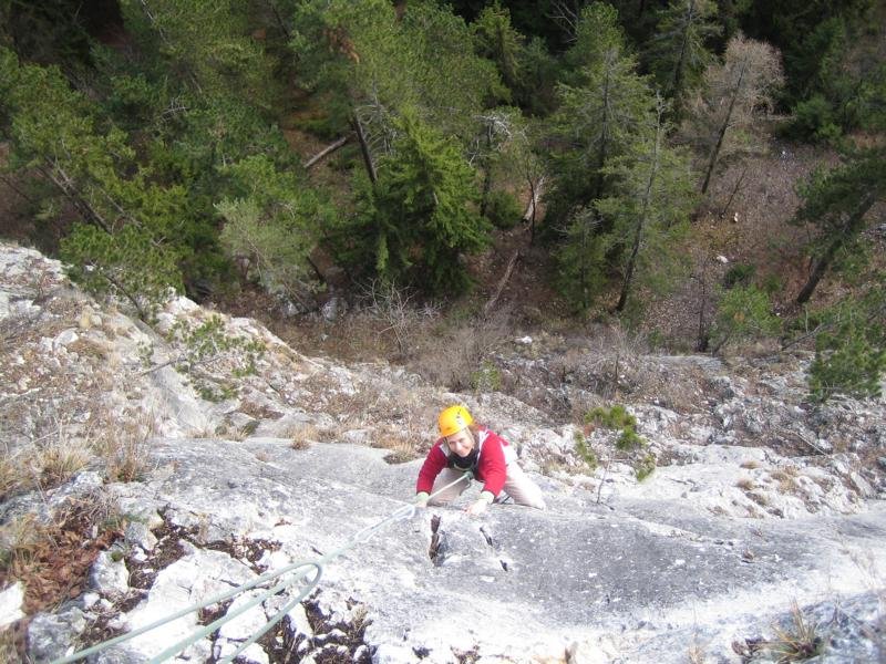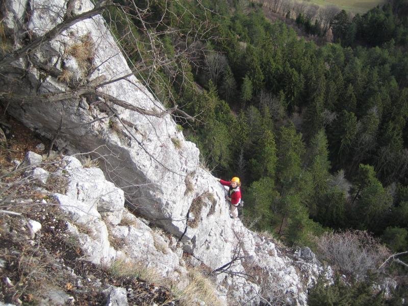Nicht über den Zahmen Fuchslochsteig zum Einstieg absteigen. Er erfordert unten Kletterrei bis 1 und ist erdig und daher gefährlich.