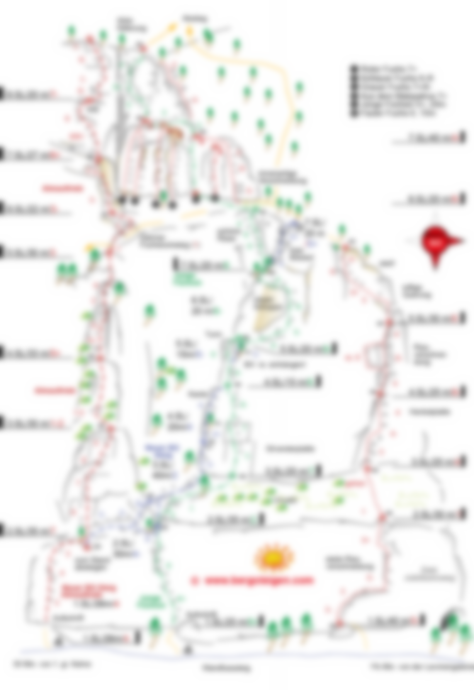 Zur 1. Kehre: Auf dem Steig in den Wald bis zu einer Forststraße, dann links zum Drachenfl iegerstartplatz. Unmittelbar davor über die Völlerin absteigen. Zur Galerie: Auf dem Steig in den Wald bis zu einer Forststraße, dieser nach rechts zum ehemaligen Gasthof Almfrieden folgen. Vom Ghf. auf einem Steig rechts über die Wiese kurz hinunter, dann links, bei der ersten Weggabelung rechts zur Hohe Wand Straße und weiter zur Galerie.