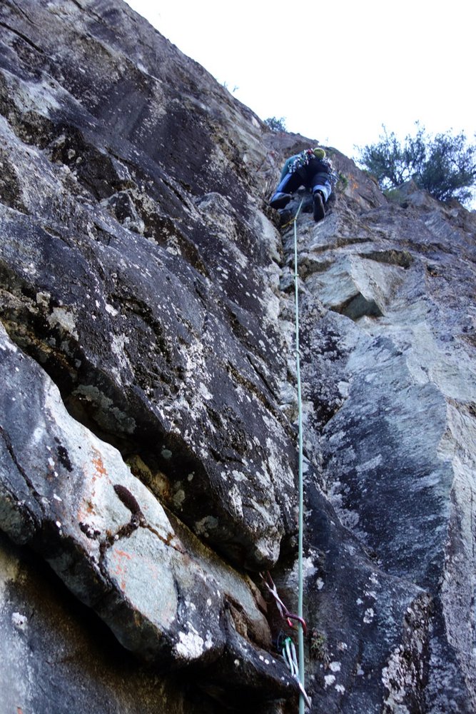 Stand Juni 2018: Die Tour wurde komplett über mehrere Tage geputzt. Sie ist dennoch anfällig für Flechten. Nicht von der ersten Seillänge abschrecken lassen, welche aufgrund der Neigung stellenweise noch etwas staubiger ist als oben.