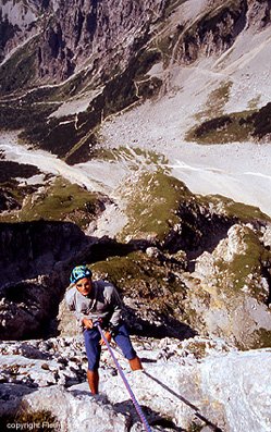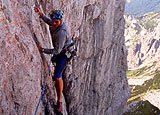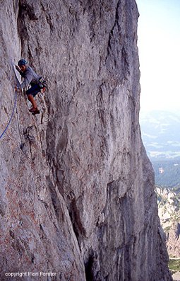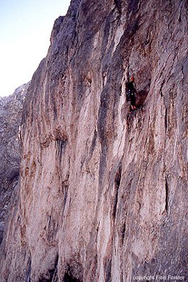 Sehr schöne, abwechslungsreiche Wandkletterei in sehr festem Fels. Teilweise sehr ausgesetzt (Quergang)