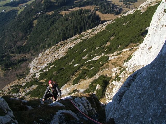 Die Tour kann man auch ohne Benutzung der Gosaukamm-Seilbahn gut vom Tal aus machen, der Vorteil, man ist etwas später am Einstieg (Westwand, erst am Nachmittag in der vollen Sonne) und hat auch keinen Stress, die letzte Seilbahn zu erwischen.