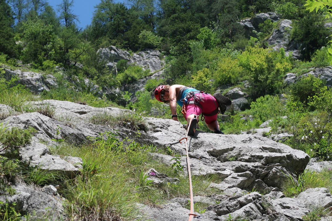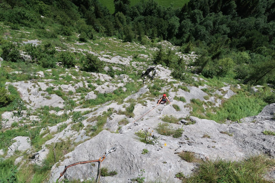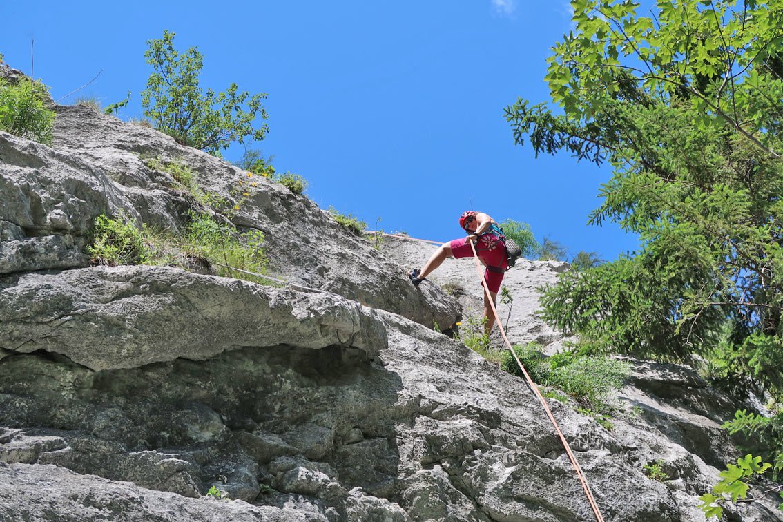Abseilen über die Tour (60 Doppelseil von Vorteil).