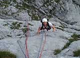 Die Anjuschka gehört zu den wenigen gut abgesicherten Touren im Tennengebirge. Sie ist von der Werfener Hütte in max. 10 min zu erreichen und bietet bis zum 3. Sporn auch recht ansprechende Kletterei, die jedoch zwischen den Spornen von Gras und Schrofenzonen unterbrochen wird. Danach wird die Route am Grad leichter und auch etwas brüchig.