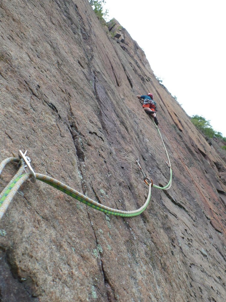 Nur an den Ständen und plattigen Stellen mit 10mm Austrialpin Bohrhaken gesichert, meist muss man aber selber absichern.