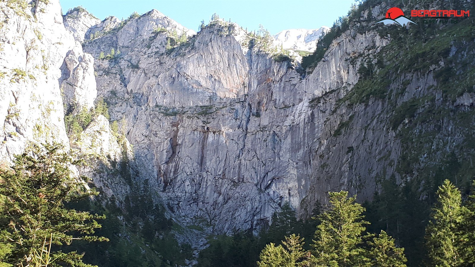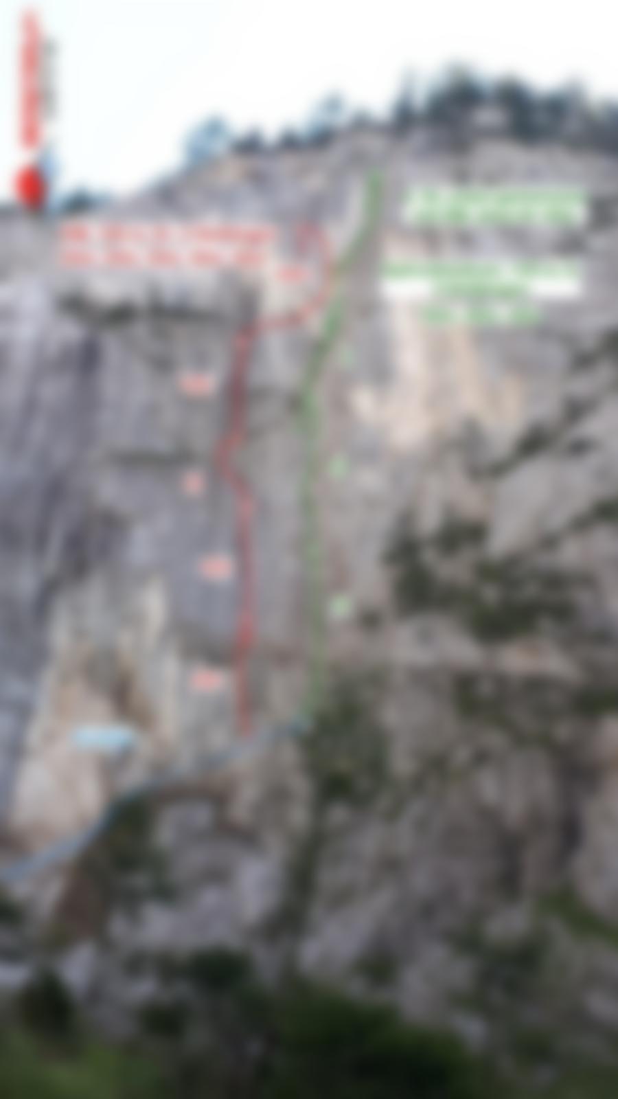 Der Einstieg befindet sich am äußerst rechten Rand der Wand. Kletterei siehe topo.