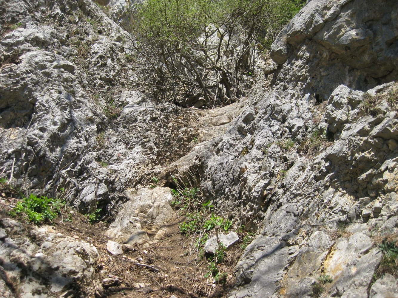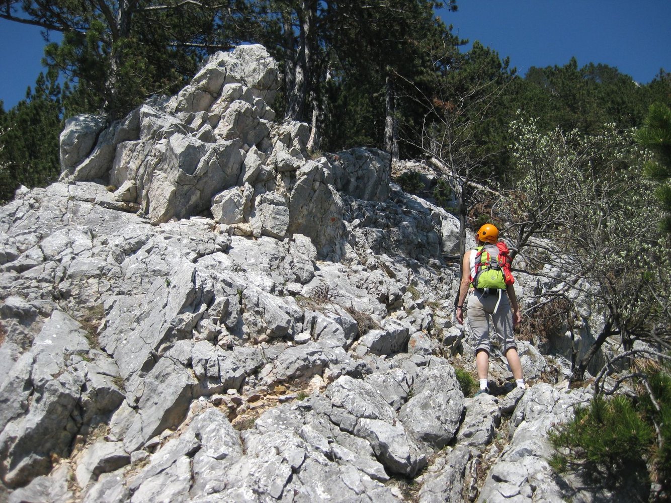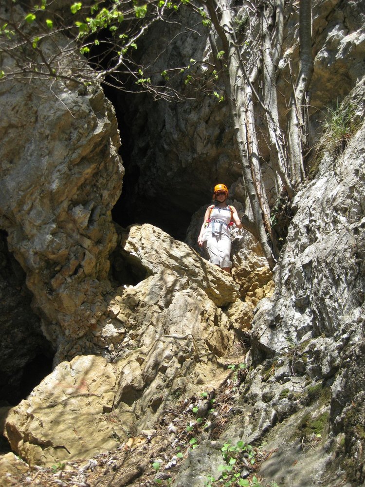 Abwechslungsreicher Steig, der einiges bietet: Eine plattige Felsrinne, unangenehme Erde, eine eindrucksvolle Höhle mit „Gamsbemmerl“, eine ausgesetzte Querung, wunderschöne Kletterstellen und einen netten leichten Grat. Die Kletterstellen weisen großteils festen Fels auf, wegen der Erdpassagen ist die Route jedoch nur bei Trockenheit zu empfehlen. Rote Markierungspunkte, Einstiegstafel.
