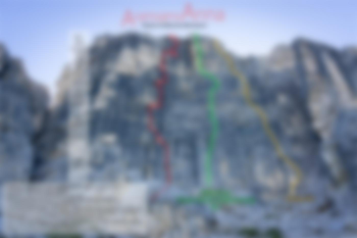 Auffahrt mit Lift (Sommer 9:00 bis 17:45 Uhr) und 8,50 Euro für Berg/Talfahrt. Von der Bergstation dem Weg 117 Richtung Forcella Misurina für 35 bis 40 min. folgen. Unter der Wand dann weglos die letzten Meter zum Einstieg. 50 Min. ab Bergstation.