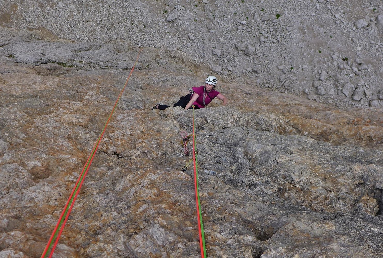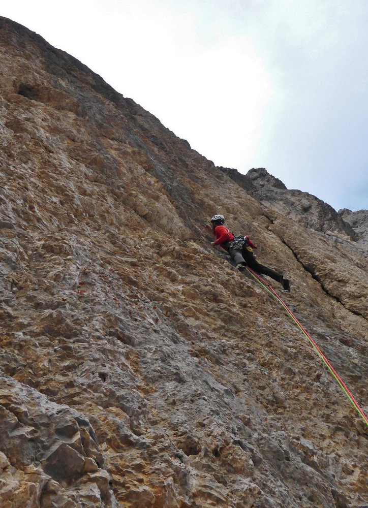 Standplätze mit Haken eingerichtet und auch die meisten Zwischenhaken sind vorhanden. Zur weiteren Absicherung ist ein Satz Cams (bis Nr. 3) sowie Stopper erforderlich. Dazu sind ein paar Haken für Notfälle durchaus ratsam.